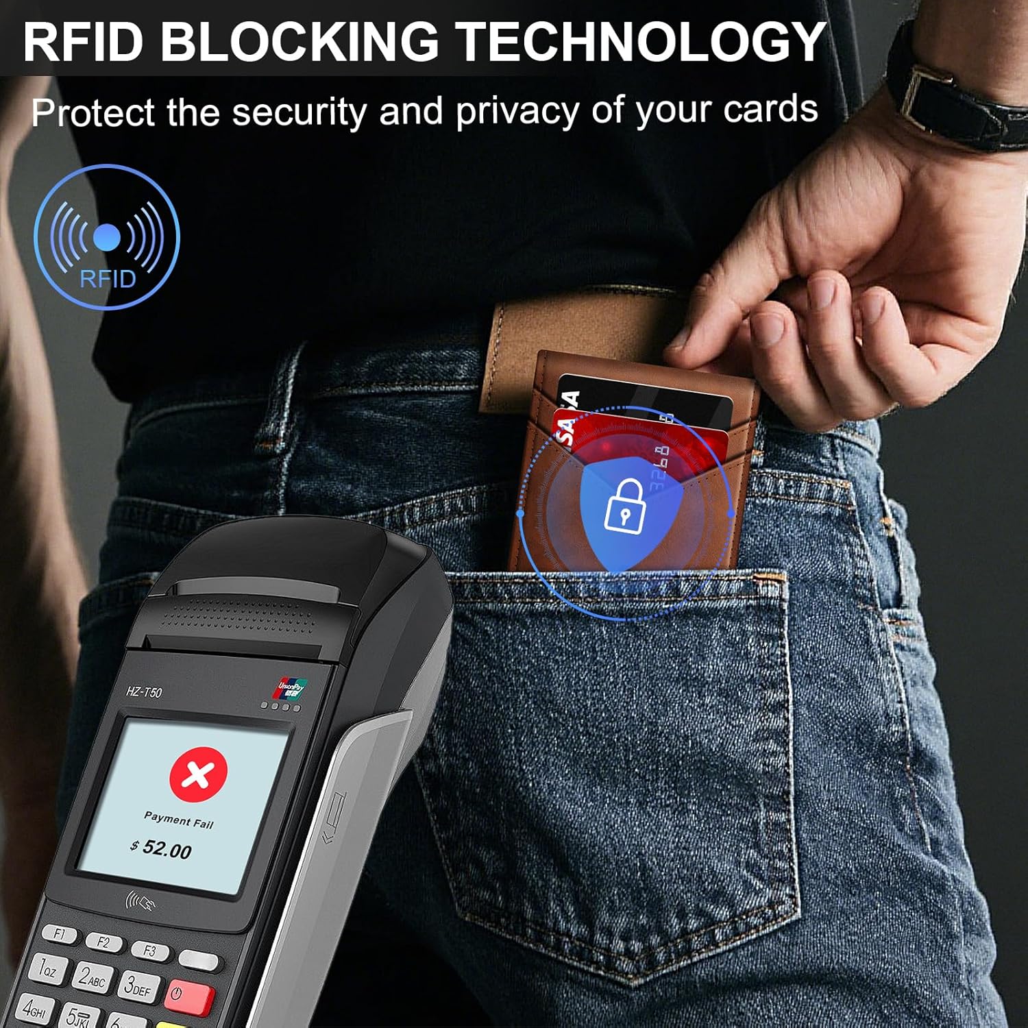 - RFID BLOCKING: The rfid wallet for men is lined with RFID-blocking fabric inside the leather layers. This protects your personal and financial information from unauthorized scans.