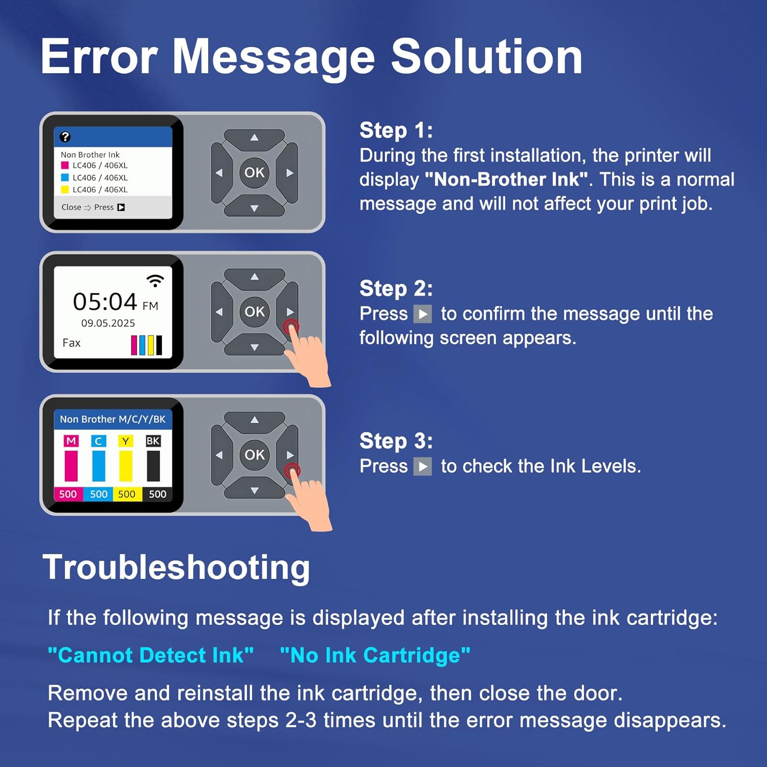 - No More Clogs - Designed for Smooth, Reliable Printing: Our optimized ink formula ensures smooth ink flow and minimizes clogging in the LC406XL ink cartridges. Specifically crafted for Brother's print heads in models like MFC-J4335DW, MFC-J6955DW, MFC-J4535DW, and MFC-J6555DW XL