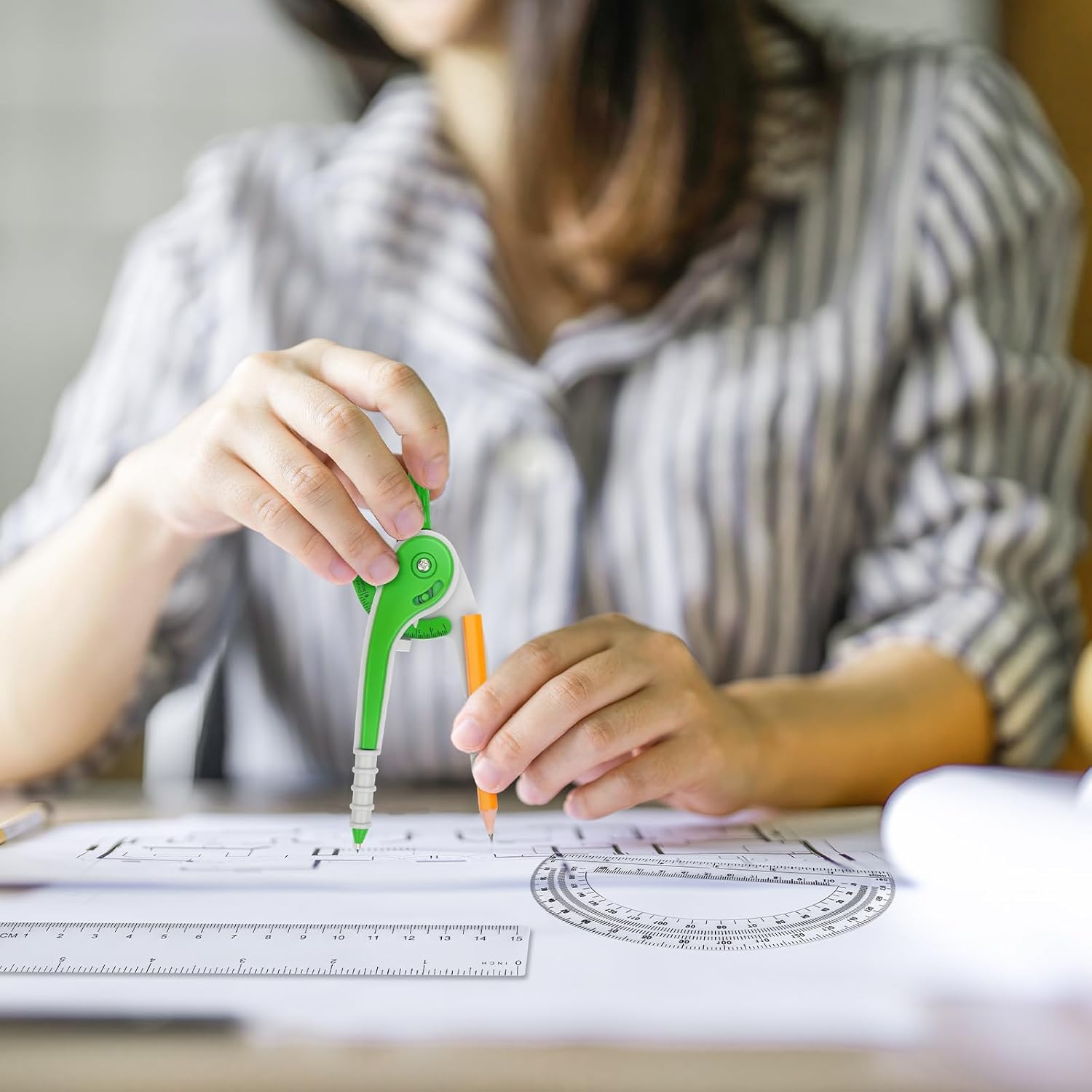 - Ideal Size: The 5.74-inch mathematical compass for geometry is well-suited for various applications; each comes with a 3.34 inch pencil that can be replaced when needed. The math compass can draw circles up to 12.2 inches in diameter and accommodates pencils, markers, and pens up to 0.3 inches in diameter, making it ideal for drawing projects and drafting