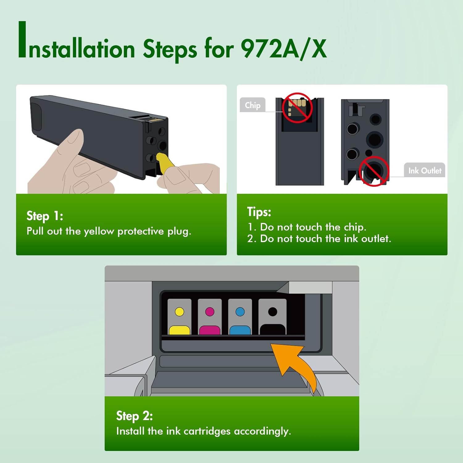 - Product Model: 4 Pack 972A Ink Cartridges for HP 972X 972A Ink Cartridges