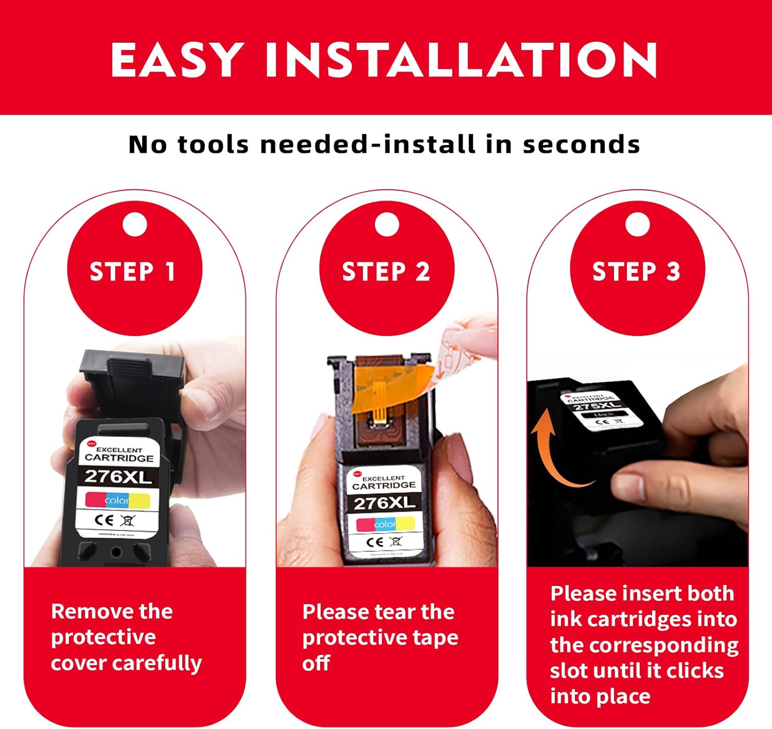 - Enhanced Compatibility with Upgraded Chips: Replacement for Canon ink 275 and 276 ,compatible for printers requiring 275XL black and 276XL tri-color ink cartridges, featuring latest upgraded chips to ensure seamless integration with models like TR4720, TS3522, TR4700, TS3722, TS3500, TS3520, TS3720, TR4722, and TR4723. Ideal for home offices and students printing assignments/budgets without driver errors