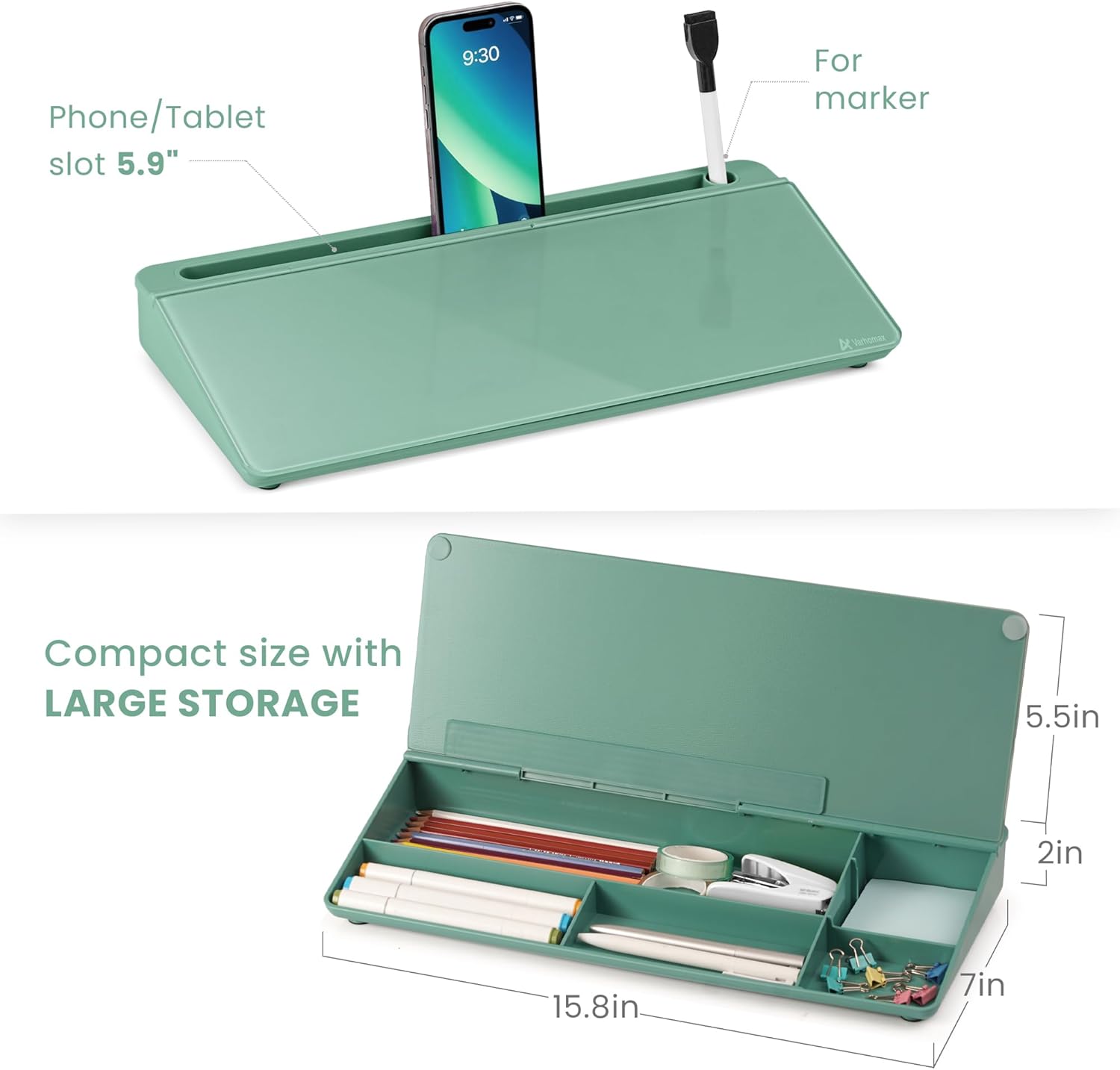 - Built-in Storage: No more clutter on your desk with the inner compartments for storing your supplies like pens, pencils, dry erase markers, paper clips, keys, glasses, and even phones, scissors, staplers, etc. Declutter your desktop and keep it neat and clean.