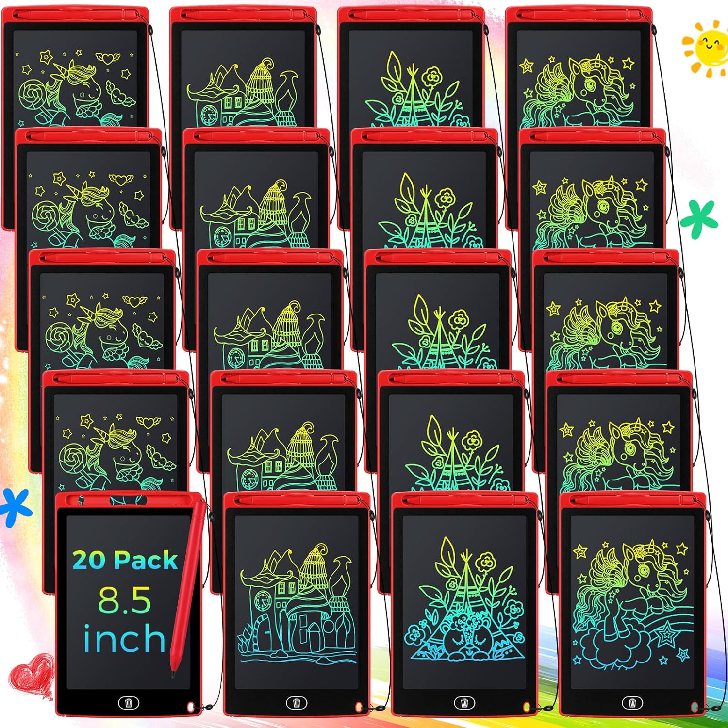 Zhehao 20 Pack LCD Writing Board for Kids, 8.5 Inches Doodle Reusable Screen Drawing Pad Erasable Painting Pads Educational Toy for 3-8 Years (Red)