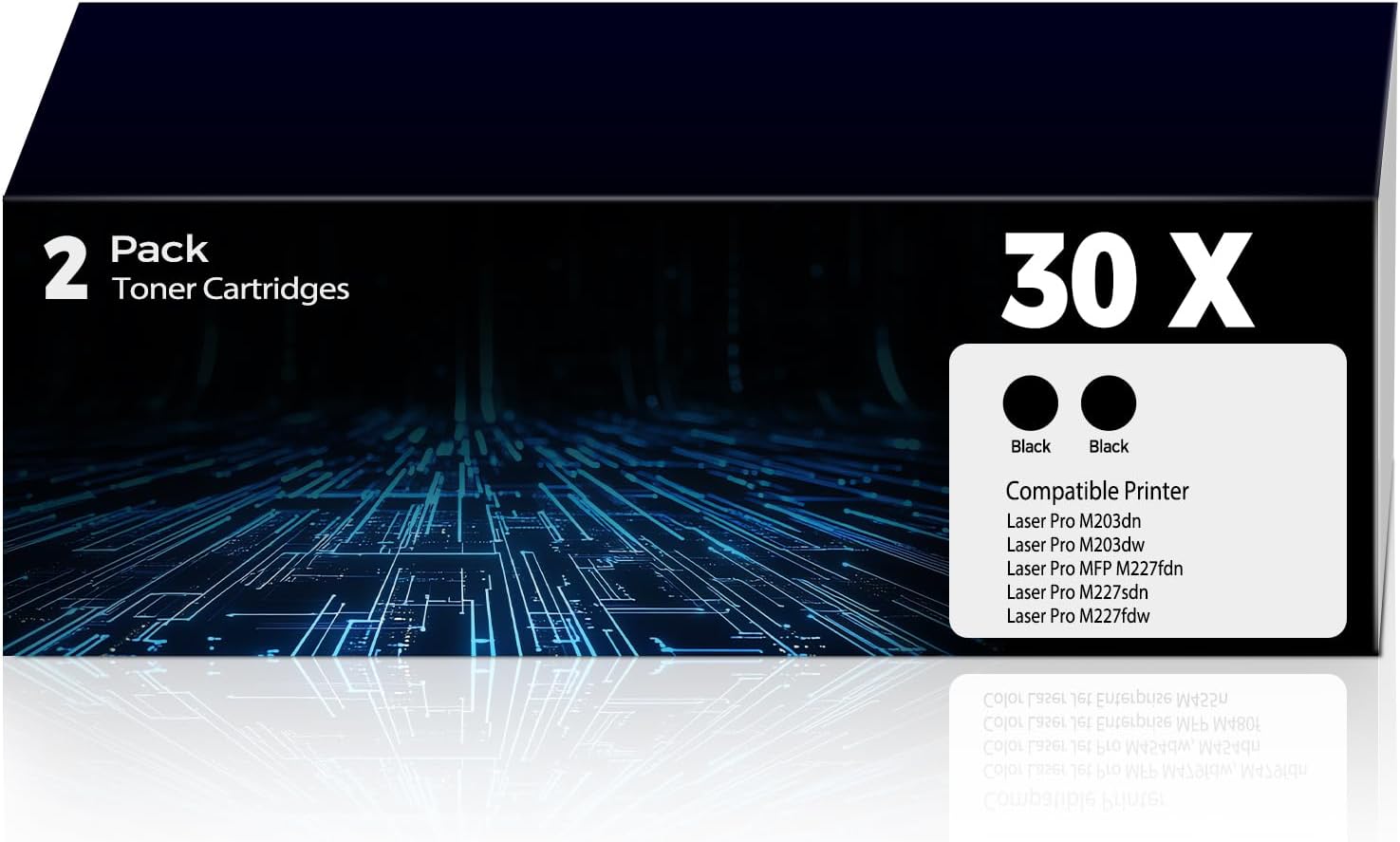 - CF230X 30X 30A Toner High Compatibility: 30X black toner cartridges Compatible for Laser Pro M203dn M203dw Pro MFP M227fdn M227sdn M227fdw printers