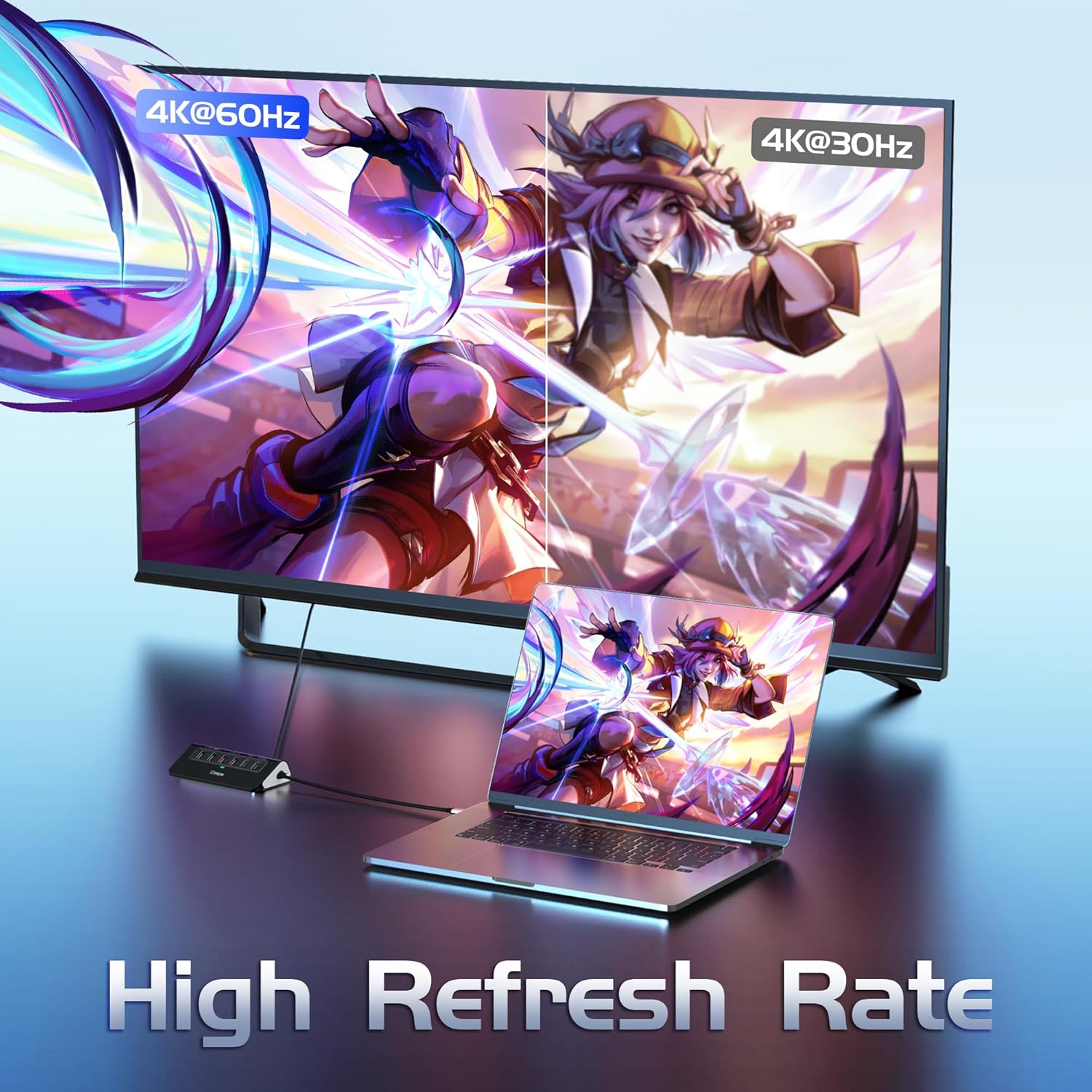 - 4K@60Hz Video Output: intpw usb hub for laptop delivered stunning 4K visuals at a 60Hz refresh rate. Perfect for education, business meeting, working, fitness and more. Note: Please plug in your laptop's power adapter before connecting monitor. USB-C devices should support USB Type-C DP Alt Mode or thunderbolt, otherwise it will won’t output images on monitors or screens