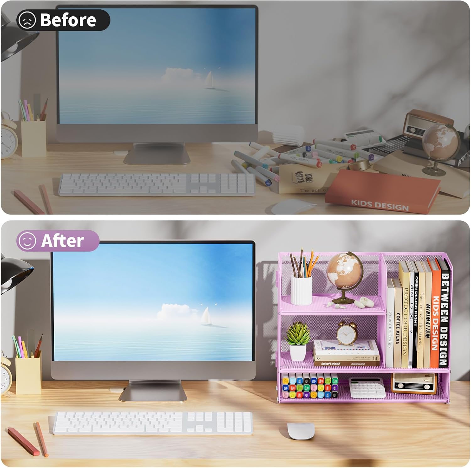 - 【Festival Gift】: This desk storage solution delights kids, parents, and friends alike. Easily transforms any cluttered desk into an organized workspace at home or office.