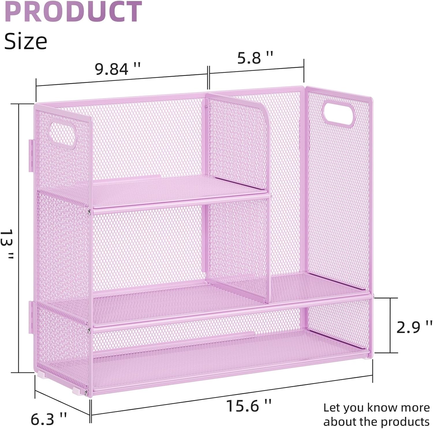 Marbrasse 3-Tier Desk Shelf Organizer with Handle, Desktop Bookshelf File Holder, Mesh Display Shelf Organizer Storage Rack for Office, Home, Supplies, Kitchen (Purple)