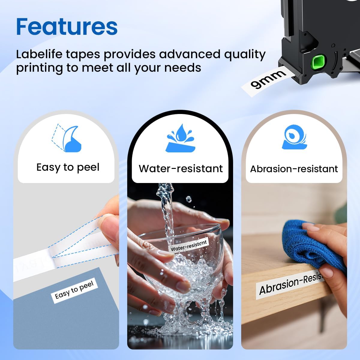 - [Compatibility] Labelife 9mm 0.35 inch tze tz label tape compatible with Brother Ptouch label maker PT-D210, PT-D220, PT-H110, PT-D610BT, PT-D460BT, PT-D410, PT-D600, PT-H100, PT-D400AD, PT-P700, PT-1230PC, PT-1890C, PT-D600VP, PT-P750W, PT-2730VP, PT-D450, PT-D400, PT-D200, PT-1880C, PT-1880, PT-H500LI, PT-2730, PT-1890w, PT-2430PC, PT-9700PC, PT-2300, PT-1280SR, PT-2030AD, PT-1090, PT-1290, PT-1880w, PT-9600, GL100, PT-1000, PT-1010 and more