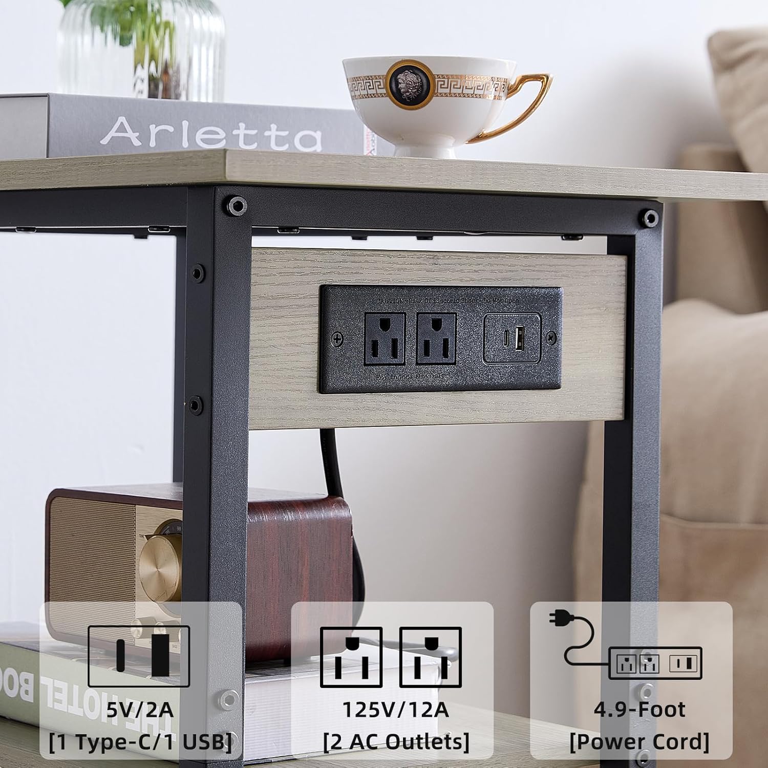 Lerliuo 3-Tier Printer Stand with Charging Station, Industrial Mobile Printer Table with Storage Shelf and Steel Frame, Rolling Printer Cart Holder with Lockable Wheels for Home, Office (Oak)