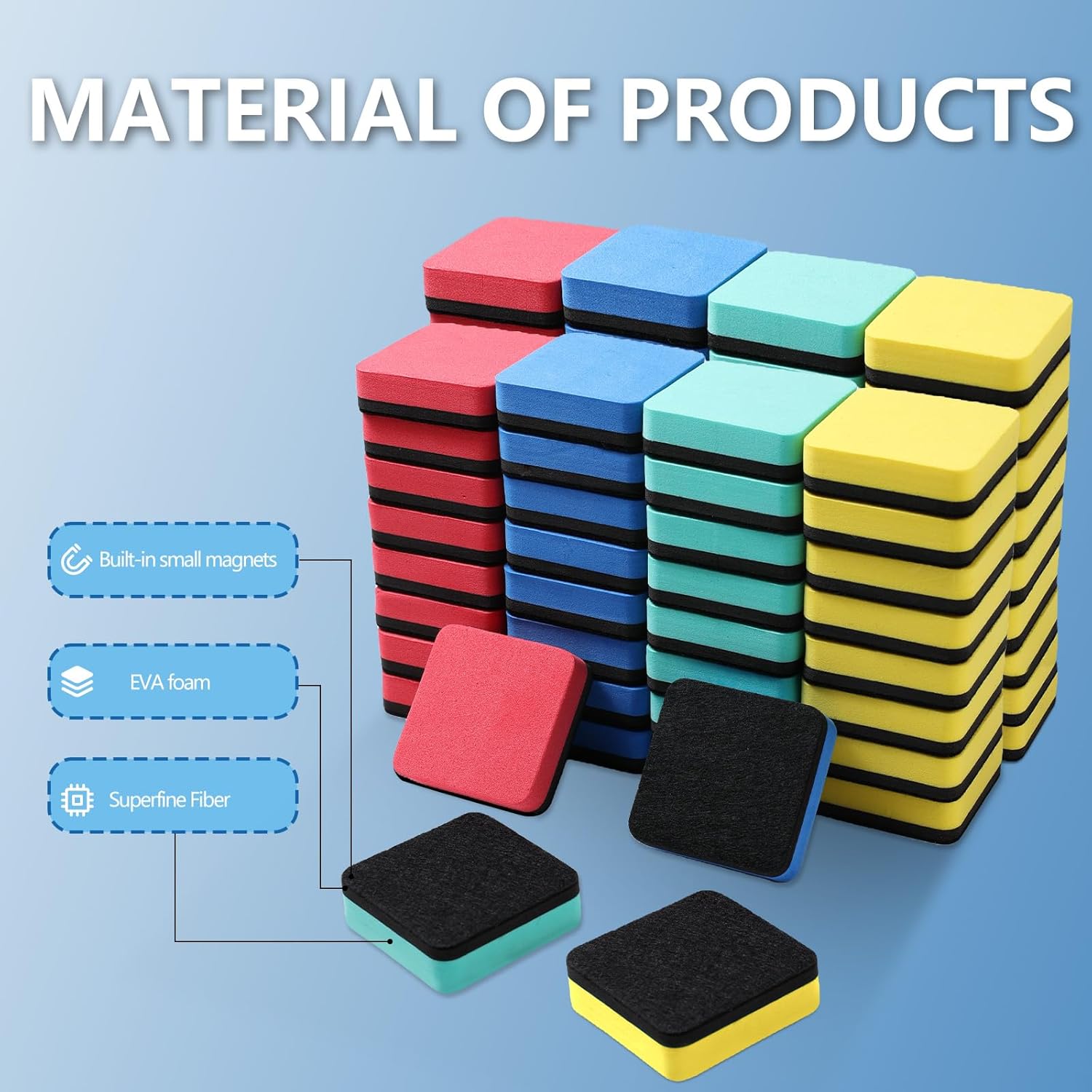 - Compact and Colorful: These magnetic dry erasers are 2 x 2 inches in size, providing comfortable grip and precise control. There are 72 magnetic whiteboard erasers in 4 different colors available for your daily use.