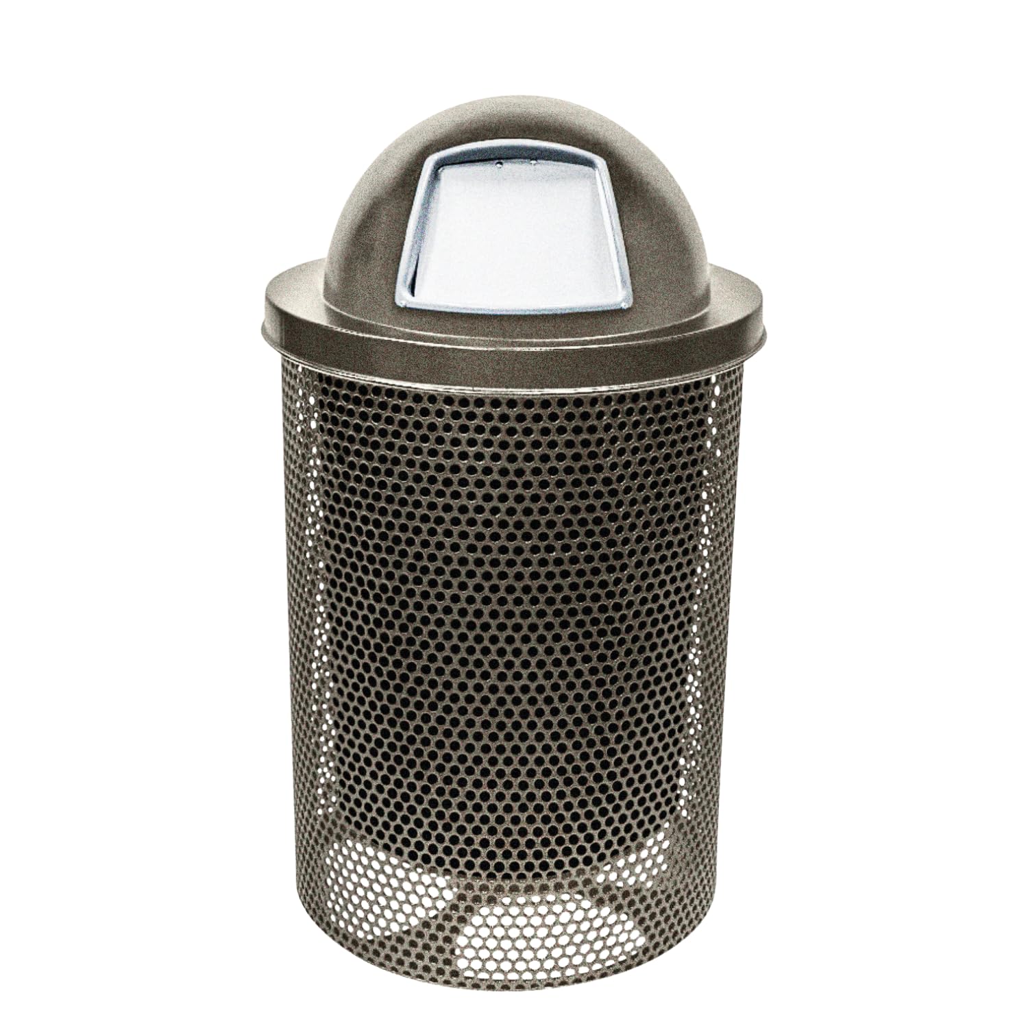 32-Gallon Heavy-Duty Punched Steel Round Trash Receptacle, Commercial Outdoor Waste Bin with Liner & Black Dome Lid – Made in America (Textured Gold Vein)