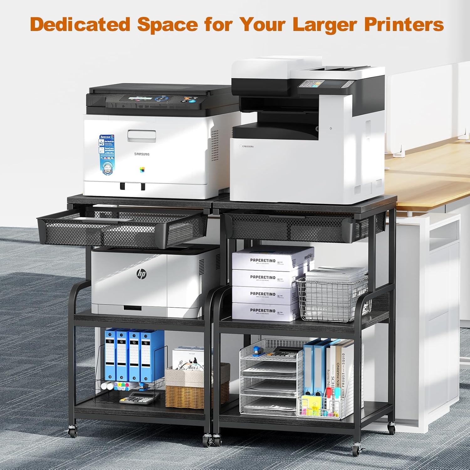 - 【Mesh Drawer Storage】The office printer stand features a mesh drawer storage system, offering a ventilated and durable space to organize office supplies like paper, ink cartridges, or cables. This design prevents clutter while keeping items visible and accessible, making it an ideal printer desk for home office setups.