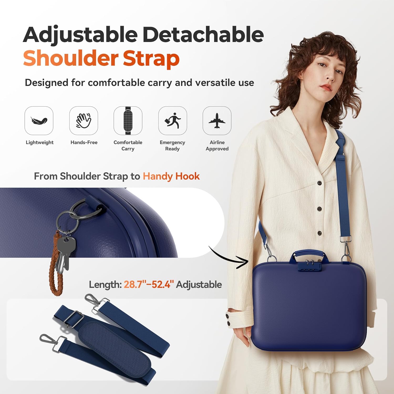 - 【Versatile & Comfortable Carrying】: Designed for convenience, our fireproof file box comes with a detachable, adjustable shoulder strap that fits ergonomically for hands-free comfort, along with a soft and sturdy handle for easy hand-carry. You can switch effortlessly between a shoulder bag and a briefcase, enjoying portability that traditional document safe can't match. It is really convenient for your happy journey to any where.