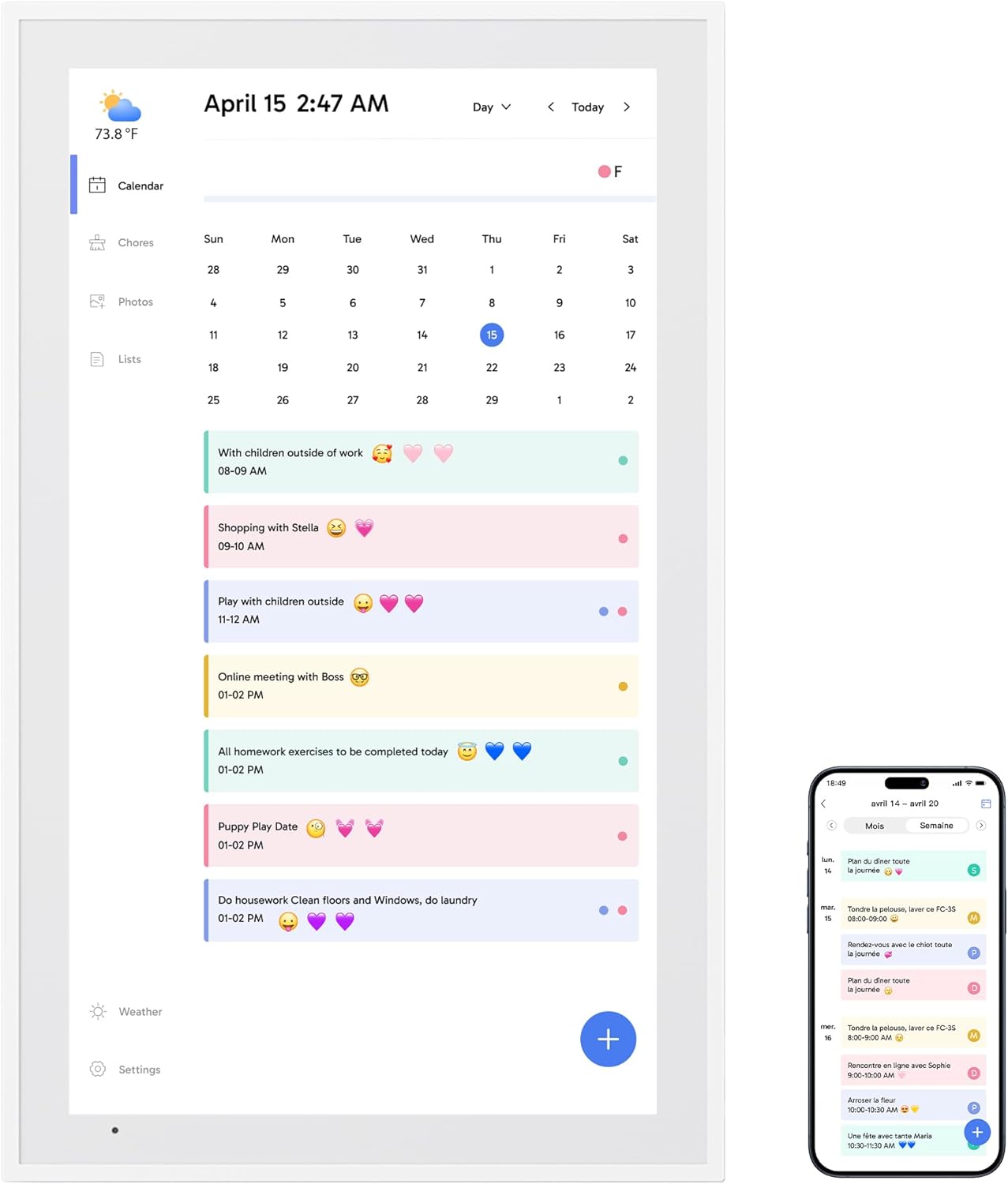 - 【Easy Setup and Auto-Sync】: Enjoy a user-friendly design that our smart picture frame allows for quick setup—just plug in, connect to Wi-Fi, and link your calendar to the Mobile App. Once synced, it seamlessly integrates multiple personal calendars (iOS, Google, etc.) into one unified interface. Authorize additional devices for even greater convenience.