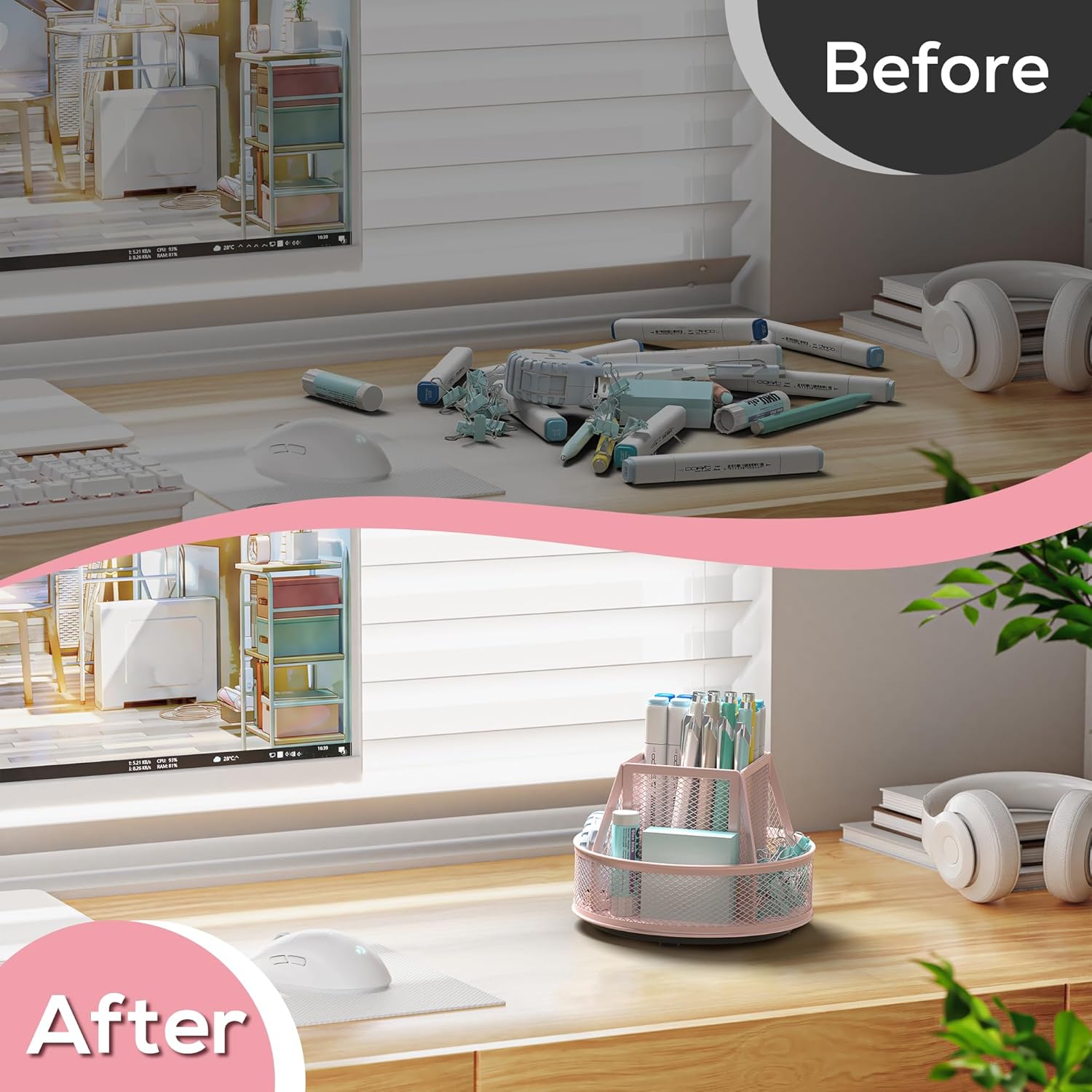 - Durable Pencil Holder for Desk Use: Made from high-quality metal mesh, this desk organizer is built to last. The pencil holder (and pen holder) is sturdy and secure, ensuring your writing instruments stay organized and within reach