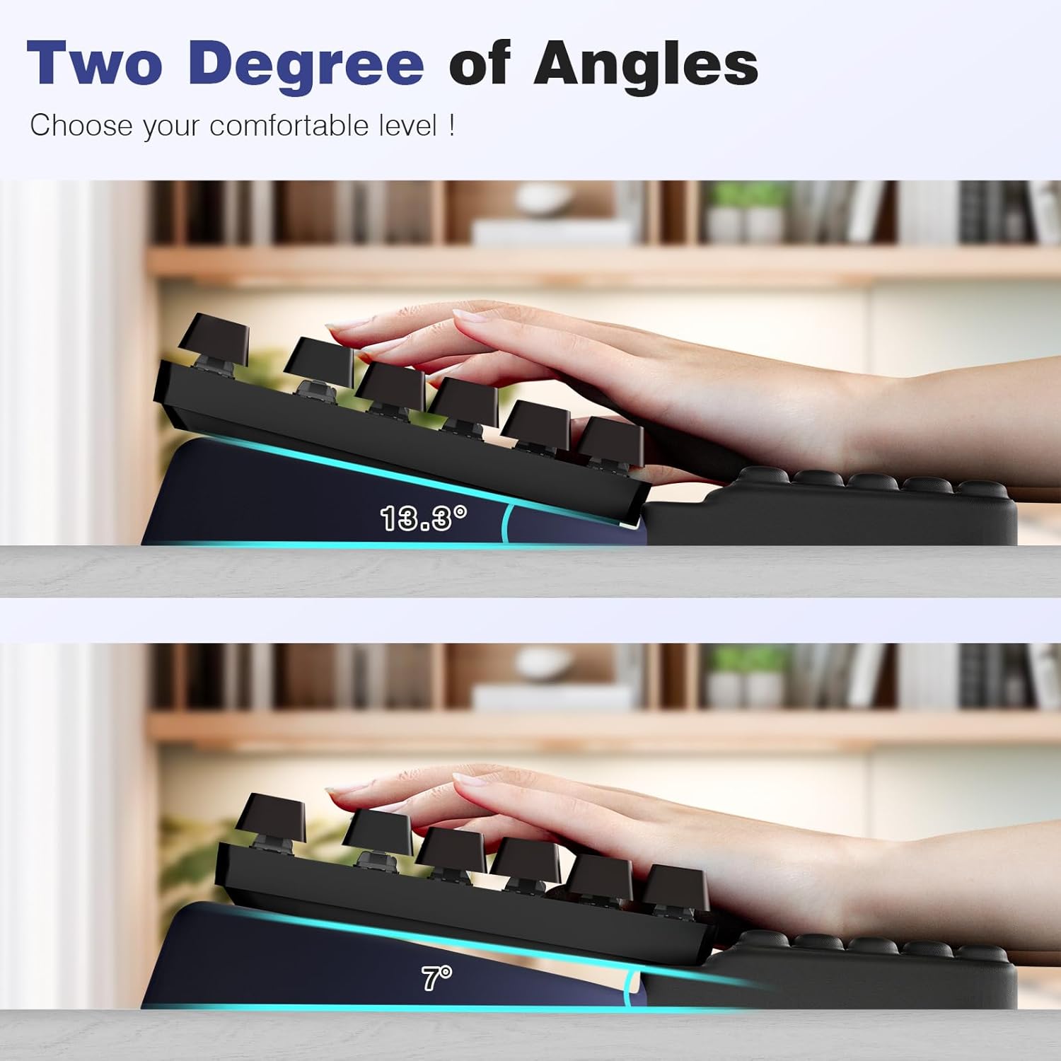 - Works with most keyboards and features two angle settings - adjust the tilt to match how you type for all-day comfort.