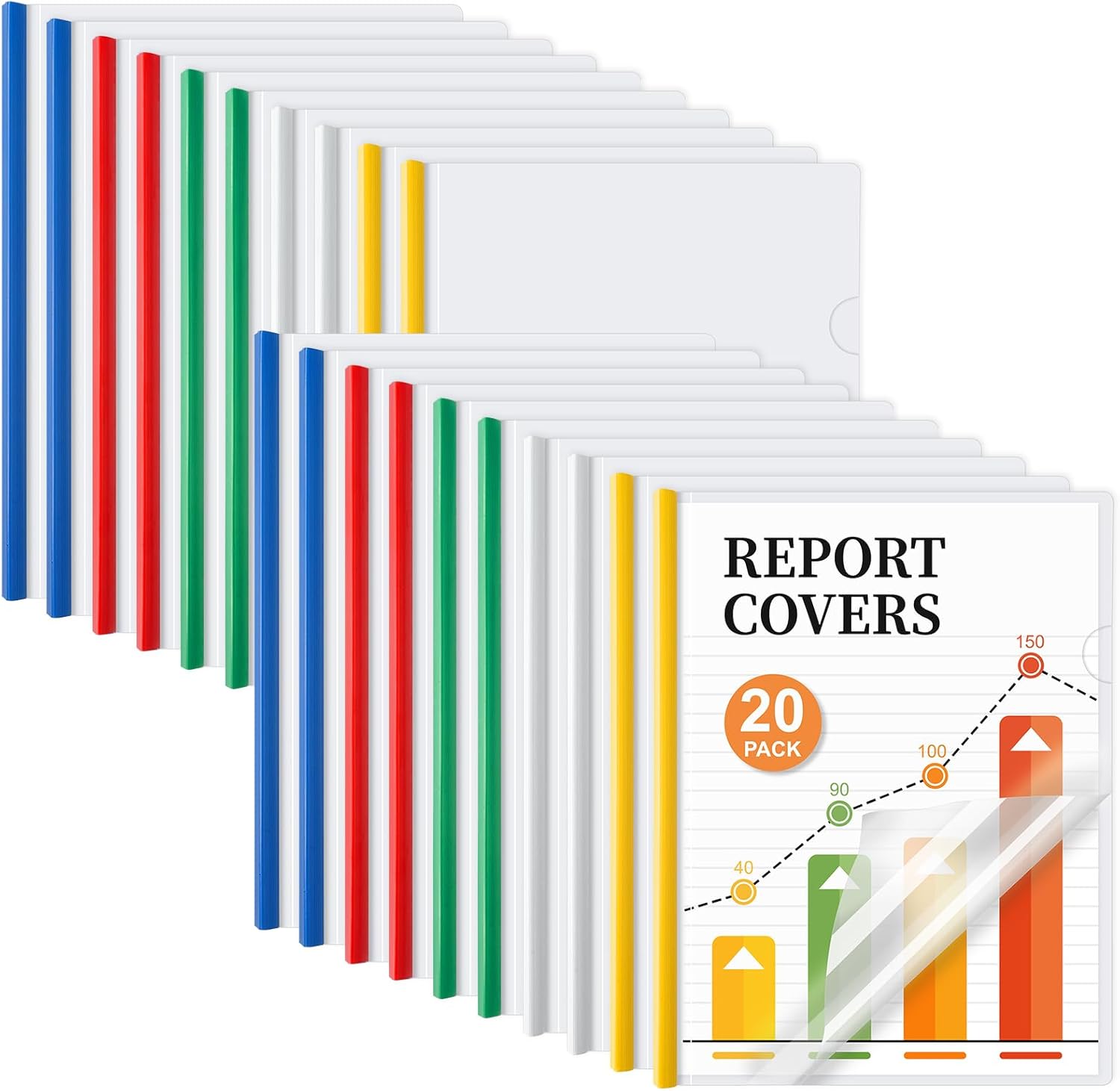 - Package Contain: Set of 20 clear report covers with sliding bars in 5 assorted colors, red, blue, yellow, green, white, to help you sort documents more orderly, designed classic and professional appearance