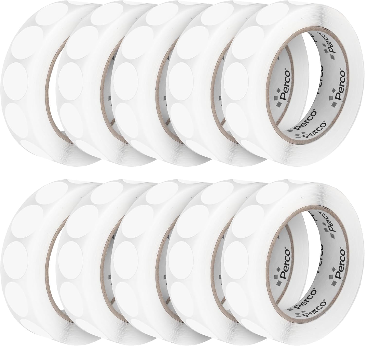 Perco Clear 1-Inch Perforated Circle Dot Sticker Labels — 10 Rolls, 10,000 Round Stickers — with Permanent Adhesive for Inventory Management, Color Coding, Garage Sales, Crafts—Made in USA