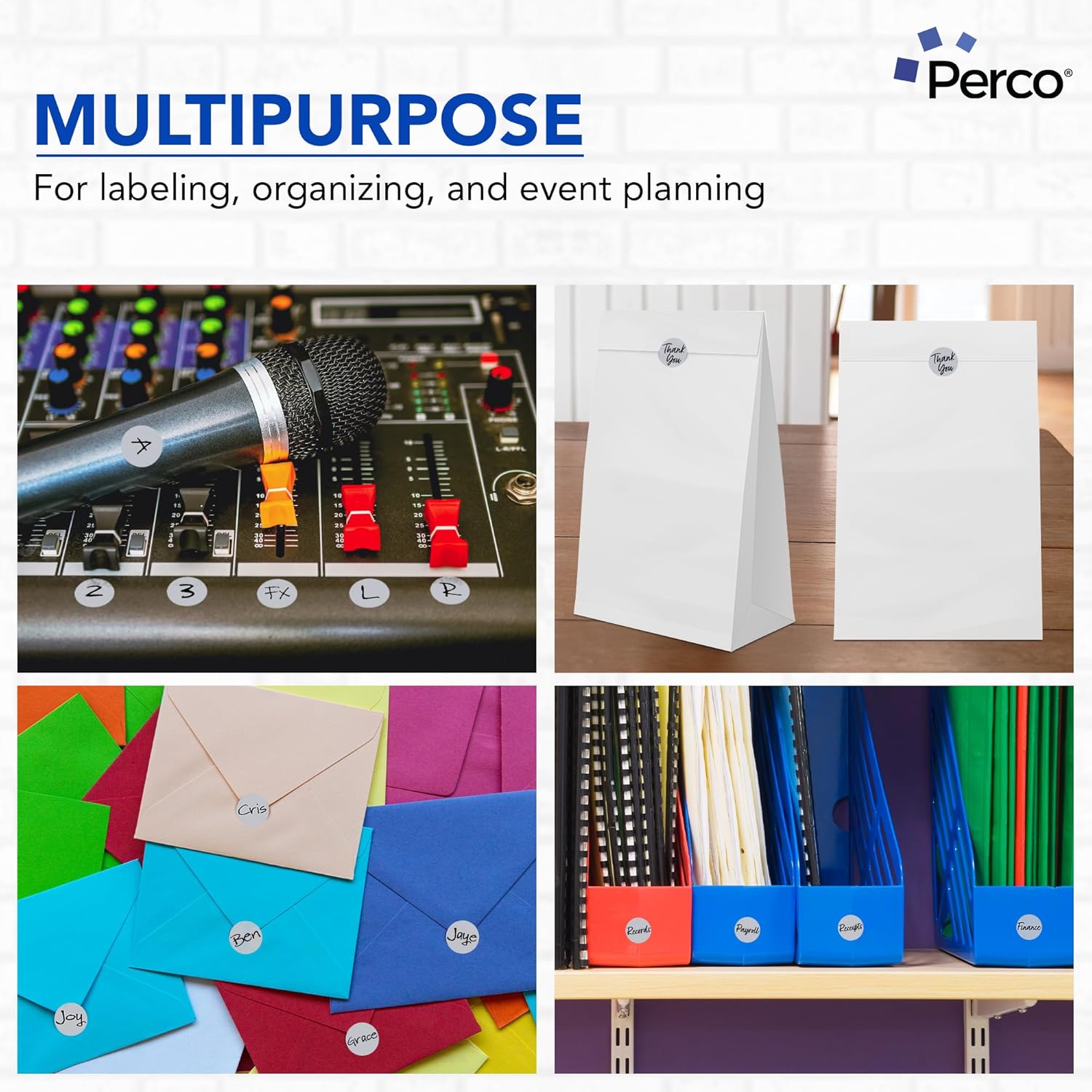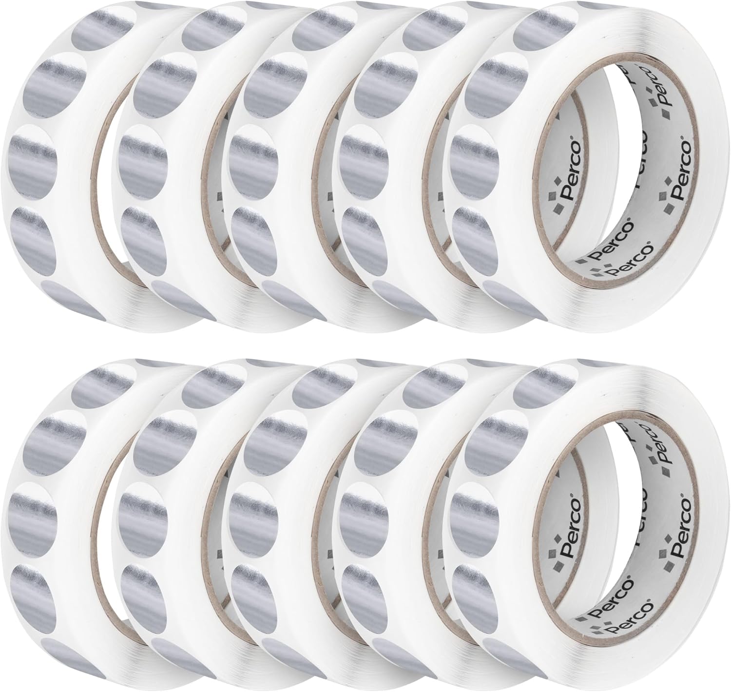Perco Metallic Silver 1-Inch Perforated Circle Dot Sticker Labels — 10 Rolls, 10,000 Round Stickers — with Permanent Adhesive for Awards, Invitations, Events, Gift Packaging, Crafting — Made in USA