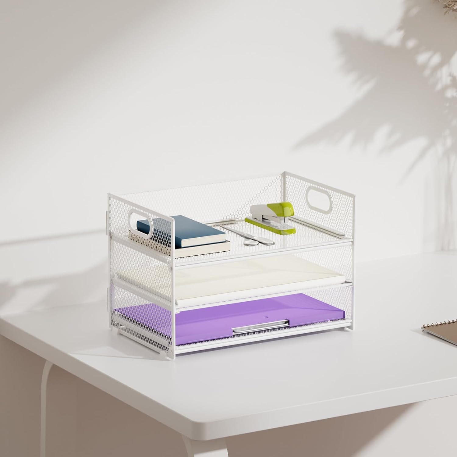 - 【MULTI-PURPOSE ORGANIZER】3-tier layered design and large capacity make the paper organizer become an ideal choice for managing all kinds of letter-size letters, paper, books, bills, etc. Let you quickly identify the contents of each compartment super easy!