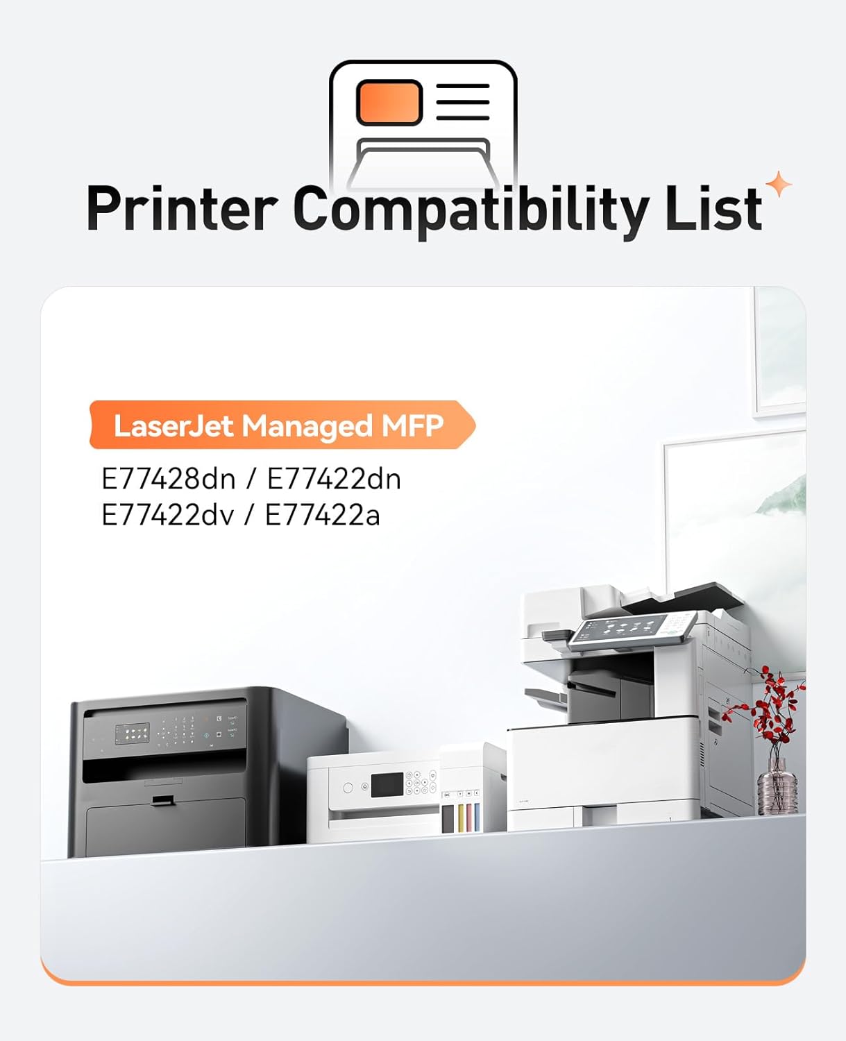 - Compatible Printer:Compatible with HP Color LaserJet Managed MFP E77428dn E77422dn E77422dv E77422a Printers.