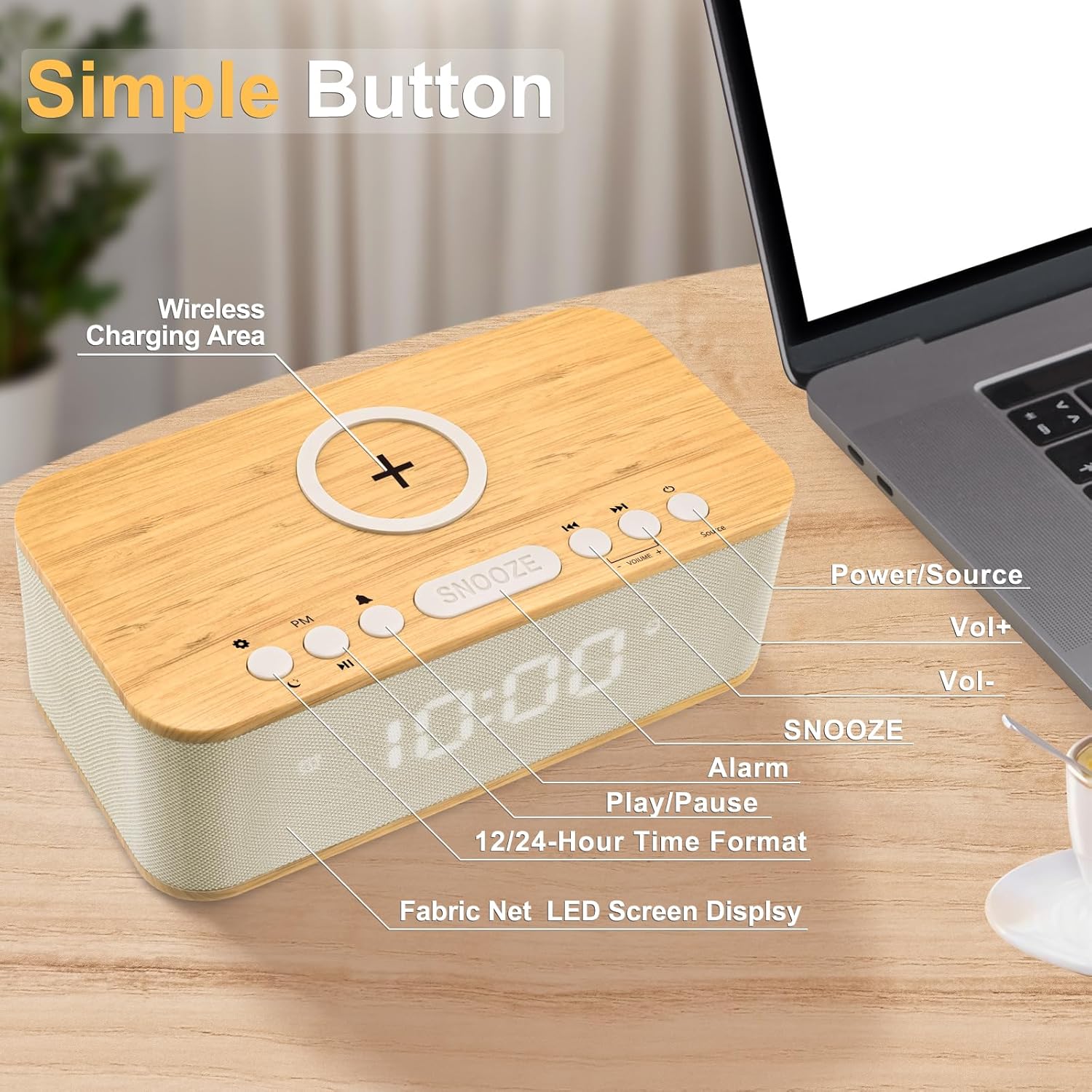 - 【Elegant Design with Practical Features】Combining aesthetic appeal with functionality, this alarm clock features a sleek bamboo-textured top, soft fabric mesh, and a crisp 5" screen. The alarm clock’s intuitive controls and 9.77" compact size fit perfectly in any space. Stylish and versatile, this alarm clock for bedrooms makes a thoughtful gift for any occasion