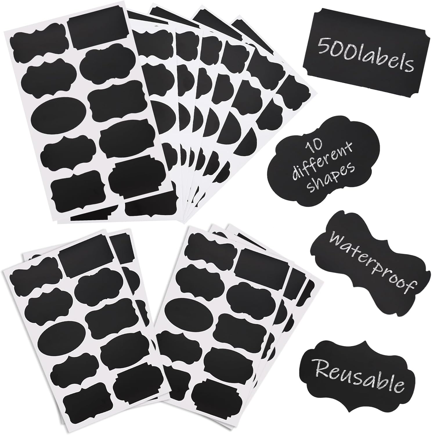 Chalkboard Labels 500 PCS, Reusable Black Labels for Jars, Suitable for Storage Boxes,Food Containers, Spice Containers, Kitchens, Weddings, Craft Making