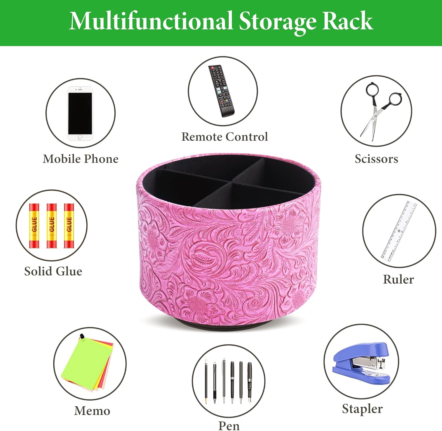 - ✎360° Revolving Design: You can freely rotate the pen holder steadily left and right,unique spinning base design allows easy access to items from any directions.The non-slip pads on the bottom keep it stay in place when rotating.