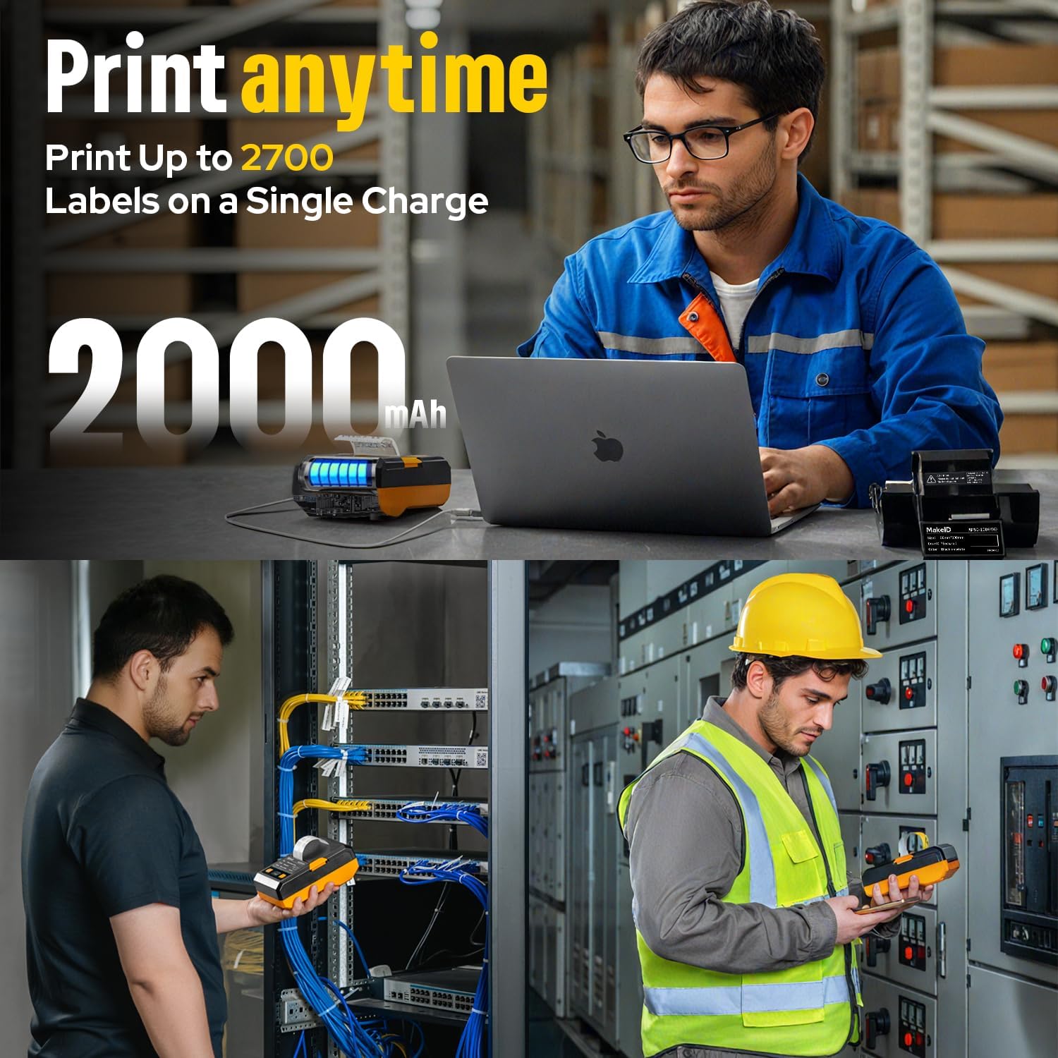 Makeid EP53 Portable Industrial Label Maker, 2" Print Head Bluetooth Label Printer, Mobile APP & PC Editor Compatible, 2000mAh Li-ion Battery, Come with 1" H x 2" W Label for Job Sites