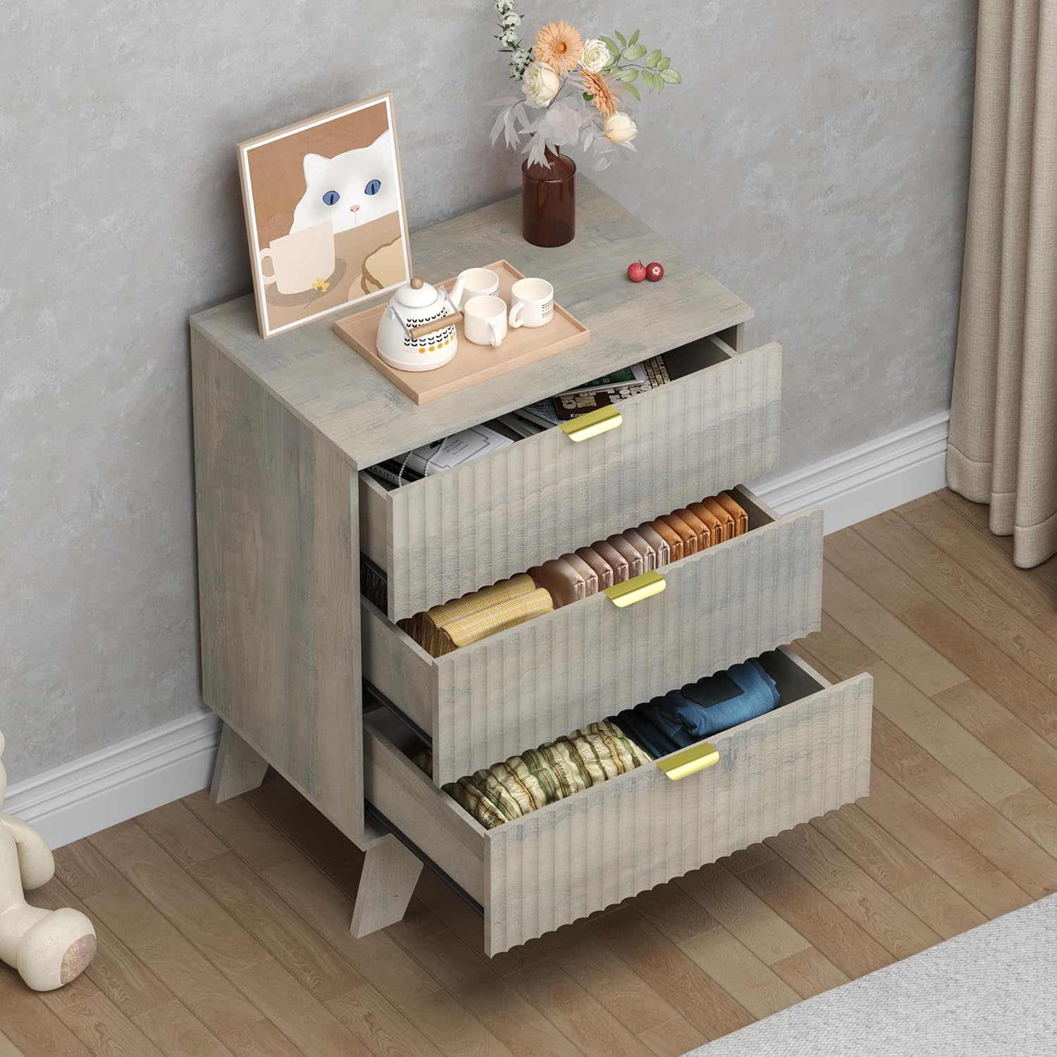 Fluted 3 Drawer Dresser, 30.3" Tall Compact Modern Boho Chest of Drawers, Wooden Storage Cabinet for Bedroom, Living Room, Entryway, Curved Profile Design