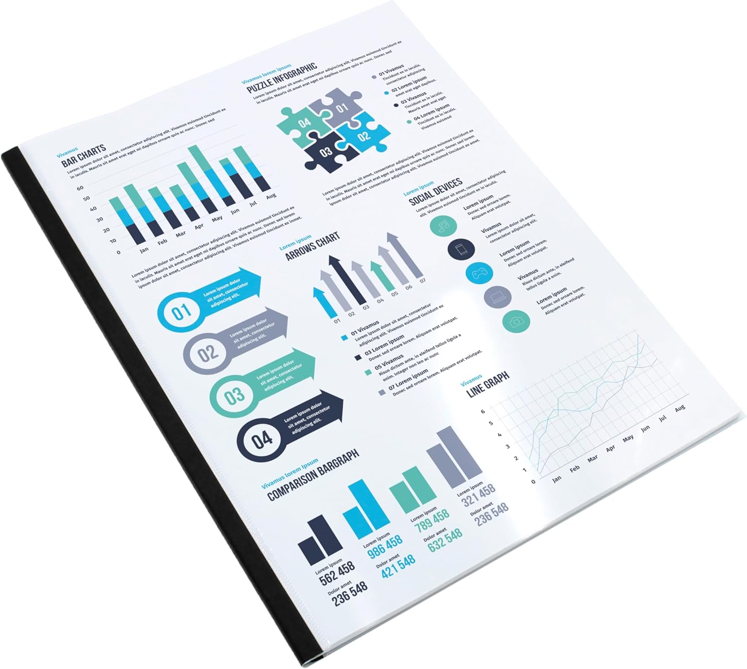 - Clear Report Covers for Binding: Ideal for showcasing title pages, proposals, and presentations. Transparent PET or matte finish options give your documents a sleek and professional appearance.