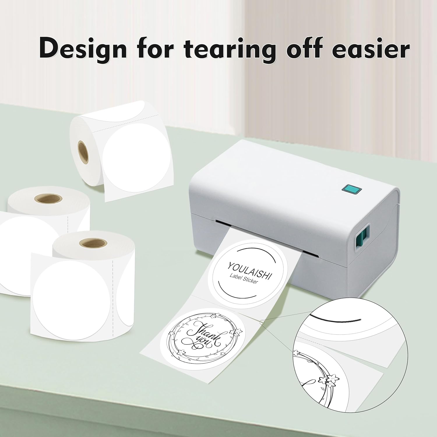 3 X 3 Inch Color Coding Dot Labels Circle White Thermal Printable Waterproof 2000 Pcs Round Stickers Adhesive Writable for Office, Home, Garage, DIY Sticker, Barcodes, Name Tag