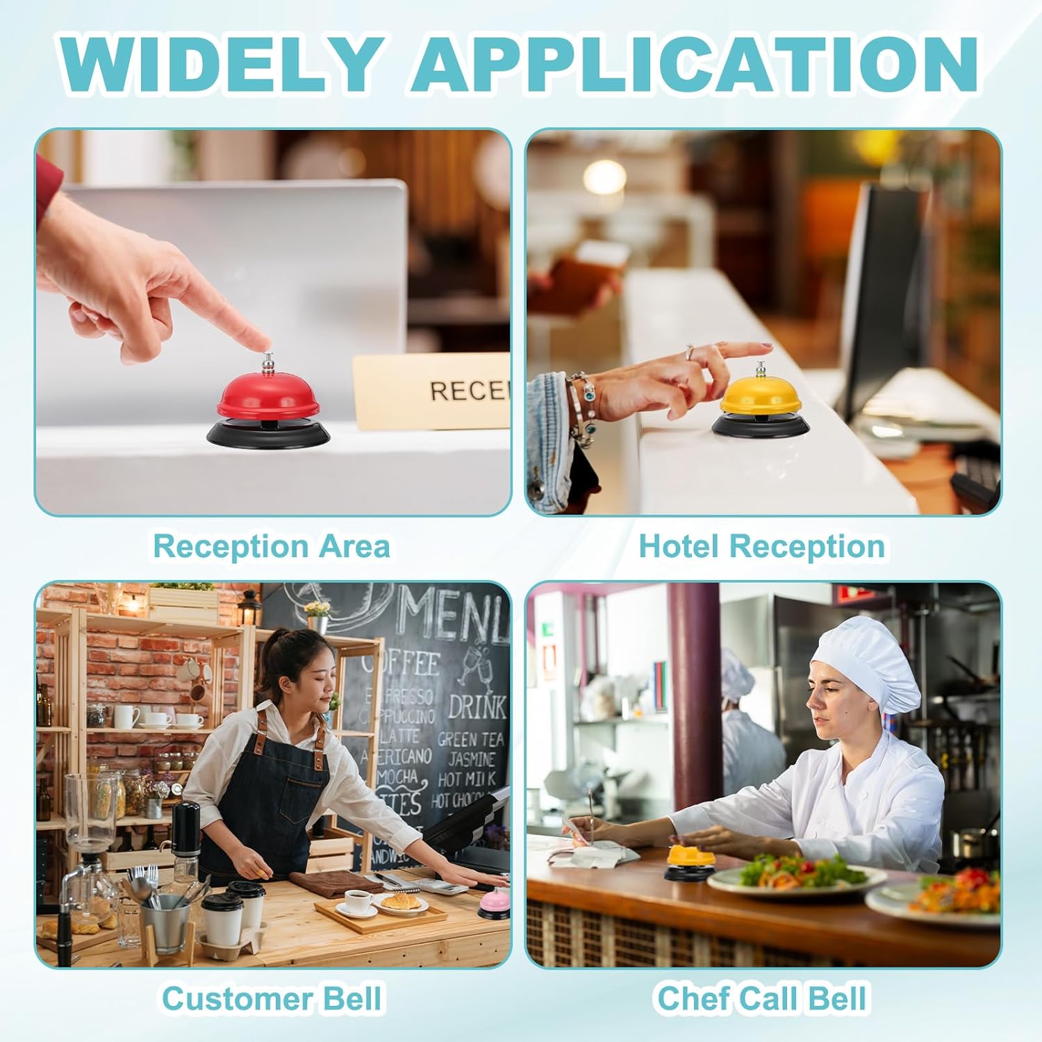 - Wide Application - The customer service bells are widely used in various occasions such as restaurants, hotel rooms, cafes, bars, dinner reception areas, etc., and can be used for scenes such as elderly people calling for help, lunch reminder sounds, and game interaction reminders.