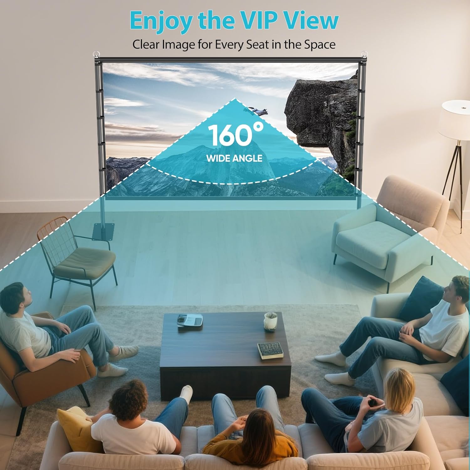 - 【Wrinkle-Free HD Projection Screen】The 120-inch projector screen is made from foldable, washable, premium 200g milk silk polyester for a wrinkle-free experience. Its enhanced thickness delivers better visual clarity than ordinary screens. With a 16:9 format, 1.3x gain white surface, it supports 1080P/4K projection at 160° wide viewing angles and works with front/rear projection modes. Ideal for indoor home theaters and backyard movie nights.