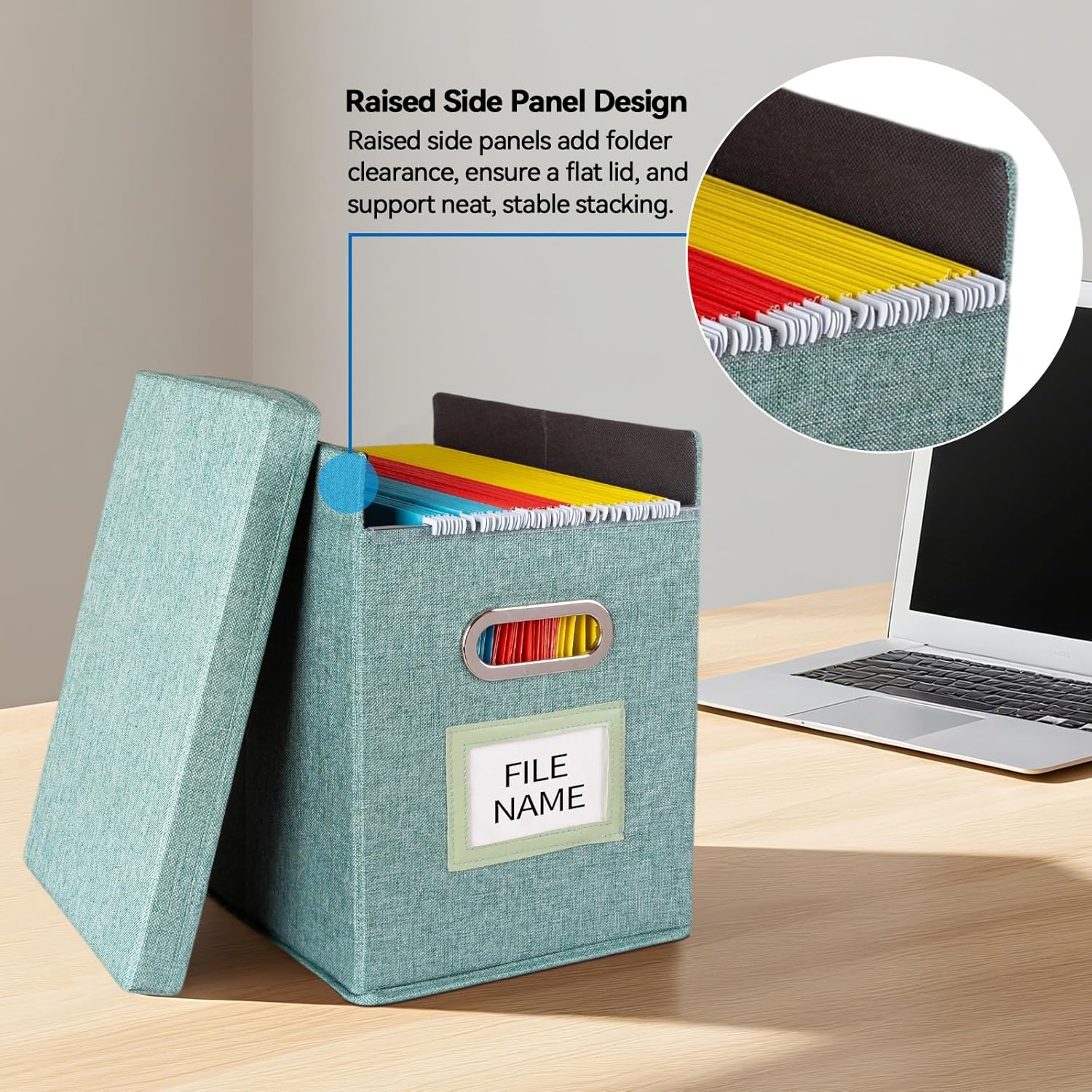 - Exclusive Lid-Friendly Design: Unlike standard file boxes, our unique raised-side design prevents file tabs from bending when the lid is closed. Features smooth PVC rails on front and back for effortless sliding, perfect for hanging file folders without damaging tabs