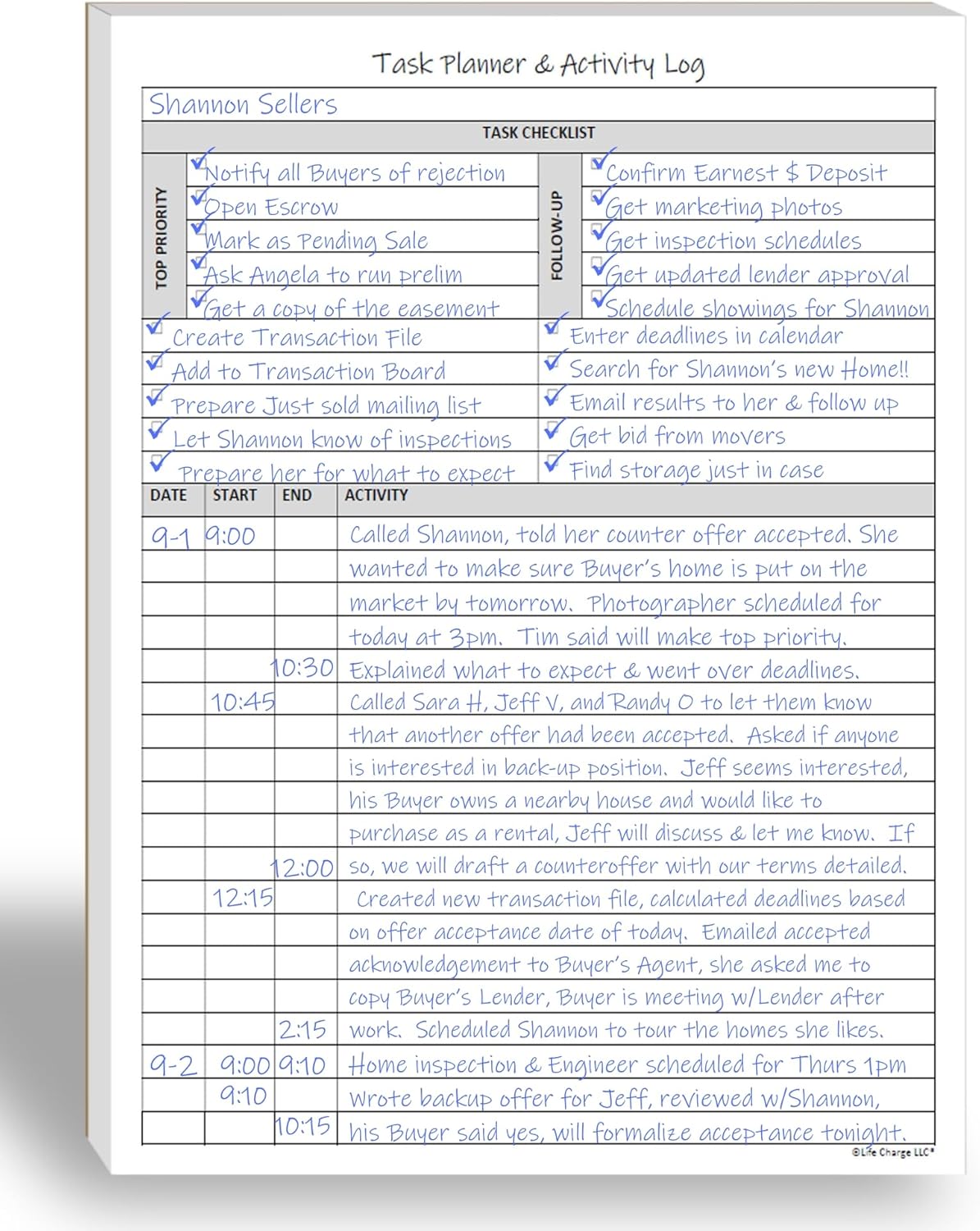 - All-in-One Task Planner & Activity Log Book. This dual-purpose notepad features a structured to-do list (Top Priority, Follow-Up, General Tasks) and a freeform activity log for tracking time and communication. Use as a time sheet, phone call log, or daily log book. Ideal for professionals, teachers, students, and ADHD users who want to boost productivity and stay organized with a paper-based planning system.