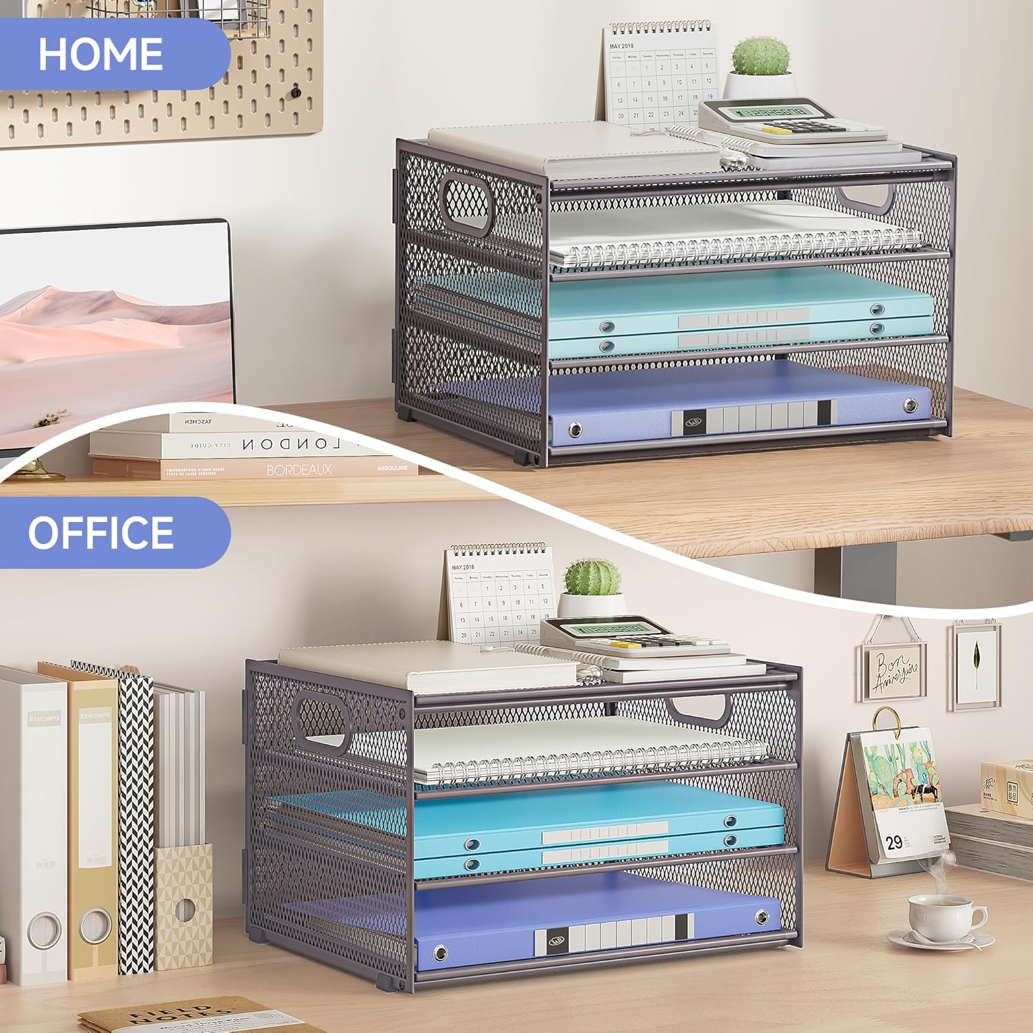- Paper Organizer Function and Usage: The mesh desktop file organizer can hold various items including paper, folders, books, bills, notebooks, etc. The open design enables quick identification and access to contents, helping to declutter and organize the desk