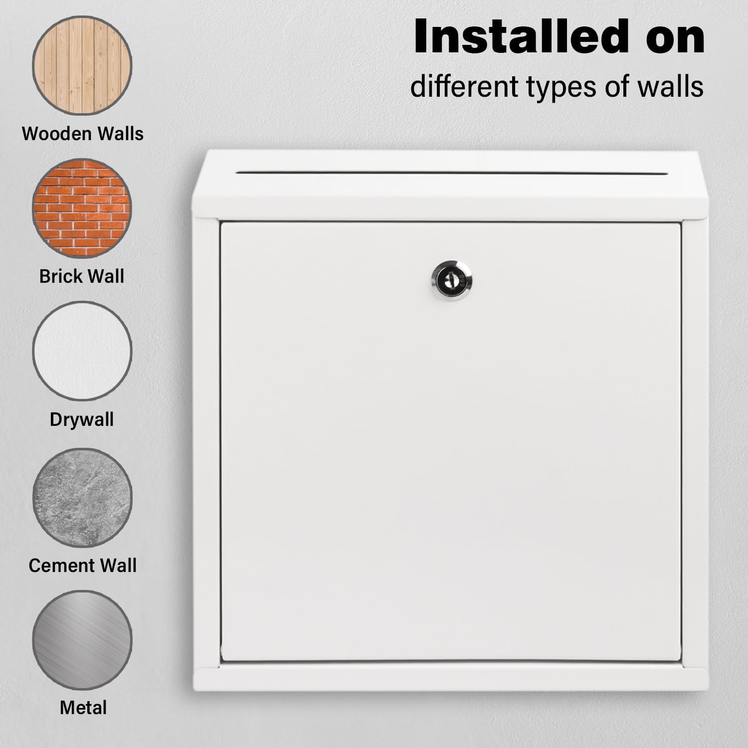 - 【Secure & Lockable】This white suggestion box includes 4 keys for flexible access control, making it ideal for teams, public spaces, or shared environments. Safely store cash, ballots, mail, or sensitive documents with enhanced security