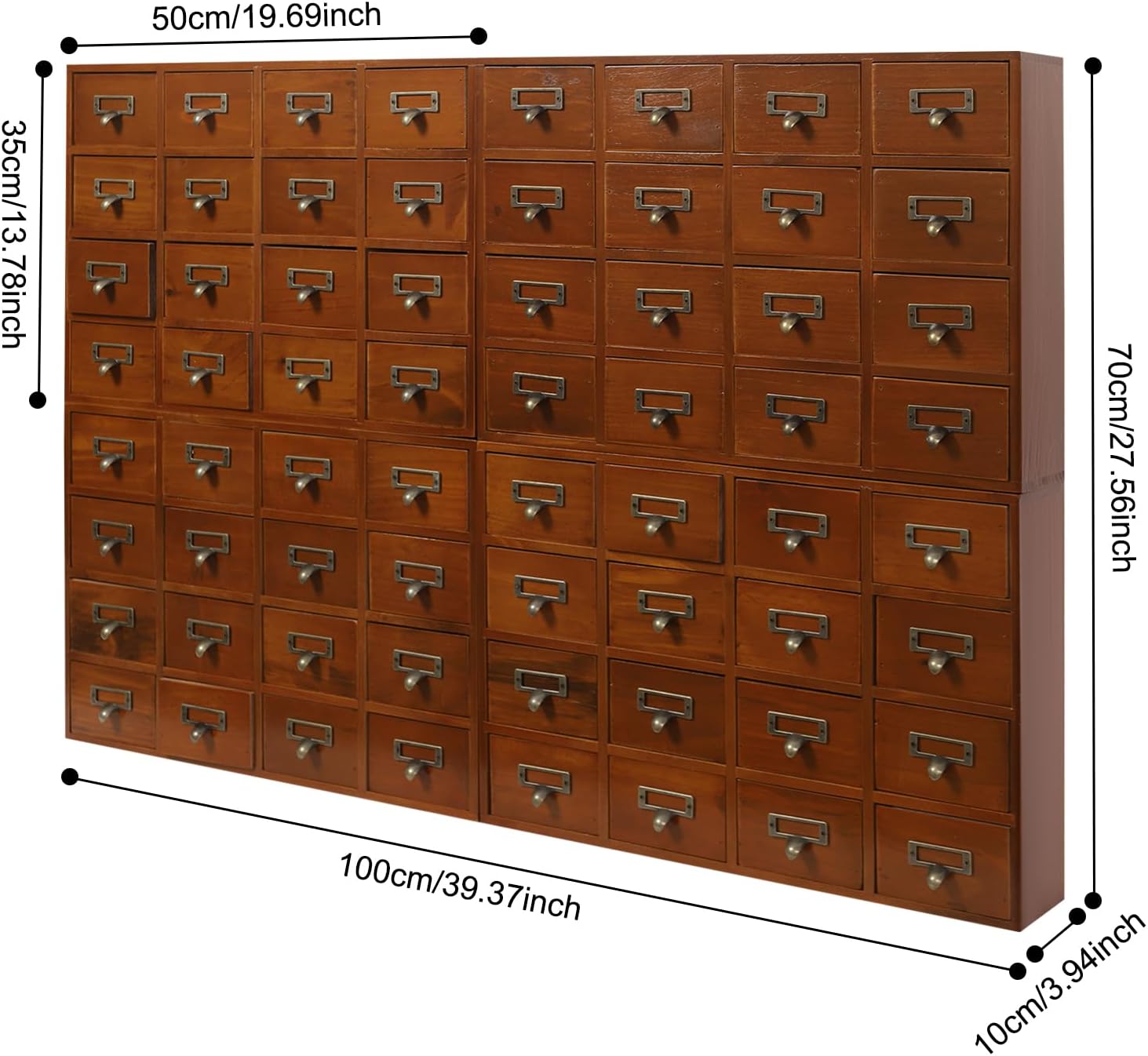 Vintage Drawer Wooden Desk Organizer, 16-Drawer Gift Storage Case Organizer Stand, Iron Label Holders, Brown, For Store Cosmetics, Files, Books, Letters, Papers, Magazines (64-Drawer/Brown)