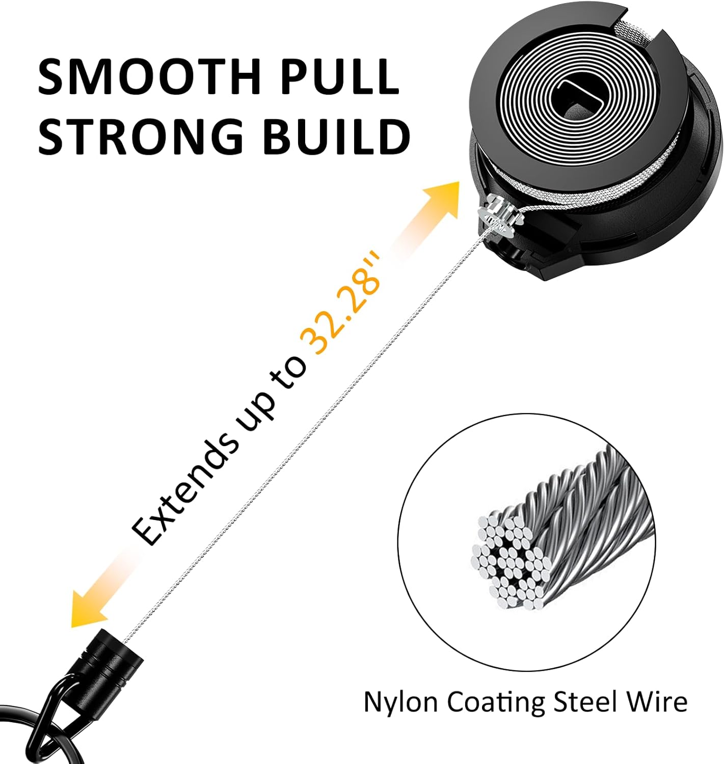 - ππ¨π§π―ππ§π’ππ§π πππππ¬π¬--The retractable key chain can be attached to your belt or backpack for daily use, eliminating the need to search pockets or bags. The 32.28-inch retractable stainless steel cord allows quick access to keys and tools when you need them.