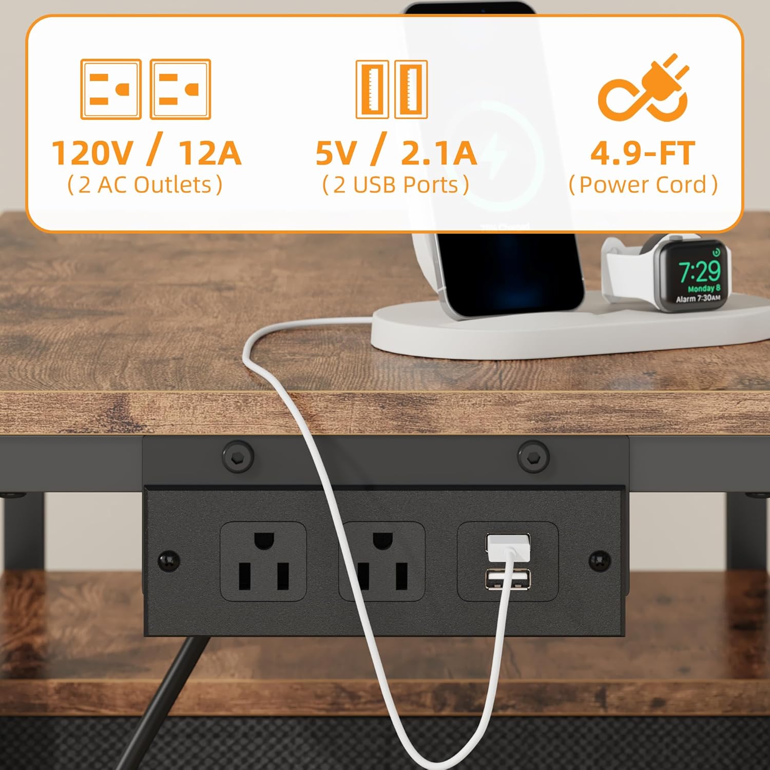 - 【Recessed Power Outlet & 2 USB Ports】Product dimension: 22.8"L×15"W×24.1"H. Large printer table built in 2 power outlets and 2 USB charging ports. Easily to plug in printer/laptop/phone/lamp and charge on the top at the same time.