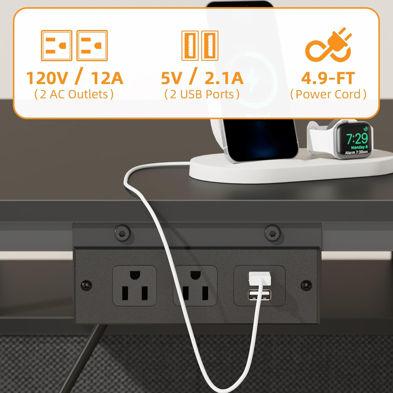 - 【Recessed Power Outlet & 2 USB Ports】Product dimension: 25.6"L×17.7"W×27.6"H. Large printer table built in 2 power outlets and 2 USB charging ports. Easily to plug in printer/laptop/phone/lamp and charge on the top at the same time.