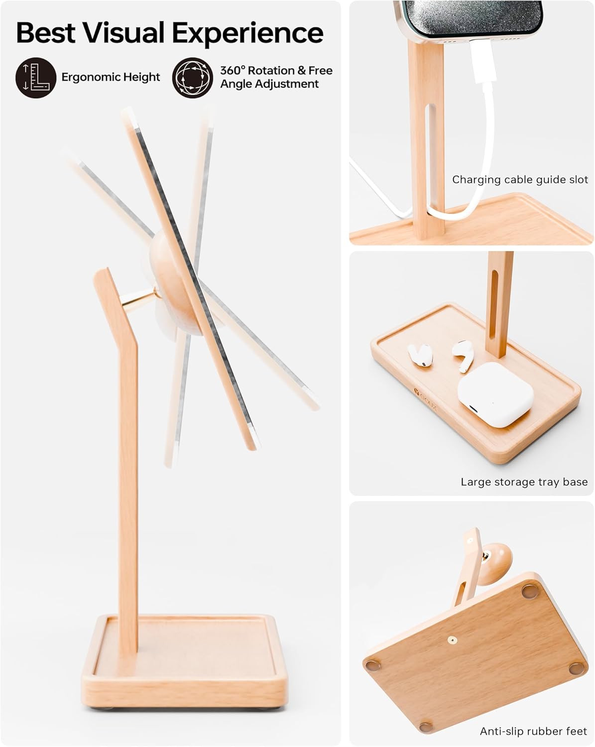 - LARGE & STABLE WOOD BASE | The weighted and widened solid wood base guarantees ultimate stability, preventing tipping. It also provides ample space to organize your desk accessories , like pens, keys, or airpods, keeping your desk tidy.