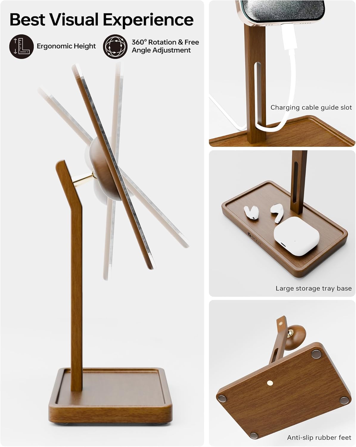 - LARGE & STABLE WOOD BASE | The weighted and widened solid wood base guarantees ultimate stability, preventing tipping. It also provides ample space to organize your desk accessories , like pens, keys, or airpods, keeping your desk tidy.