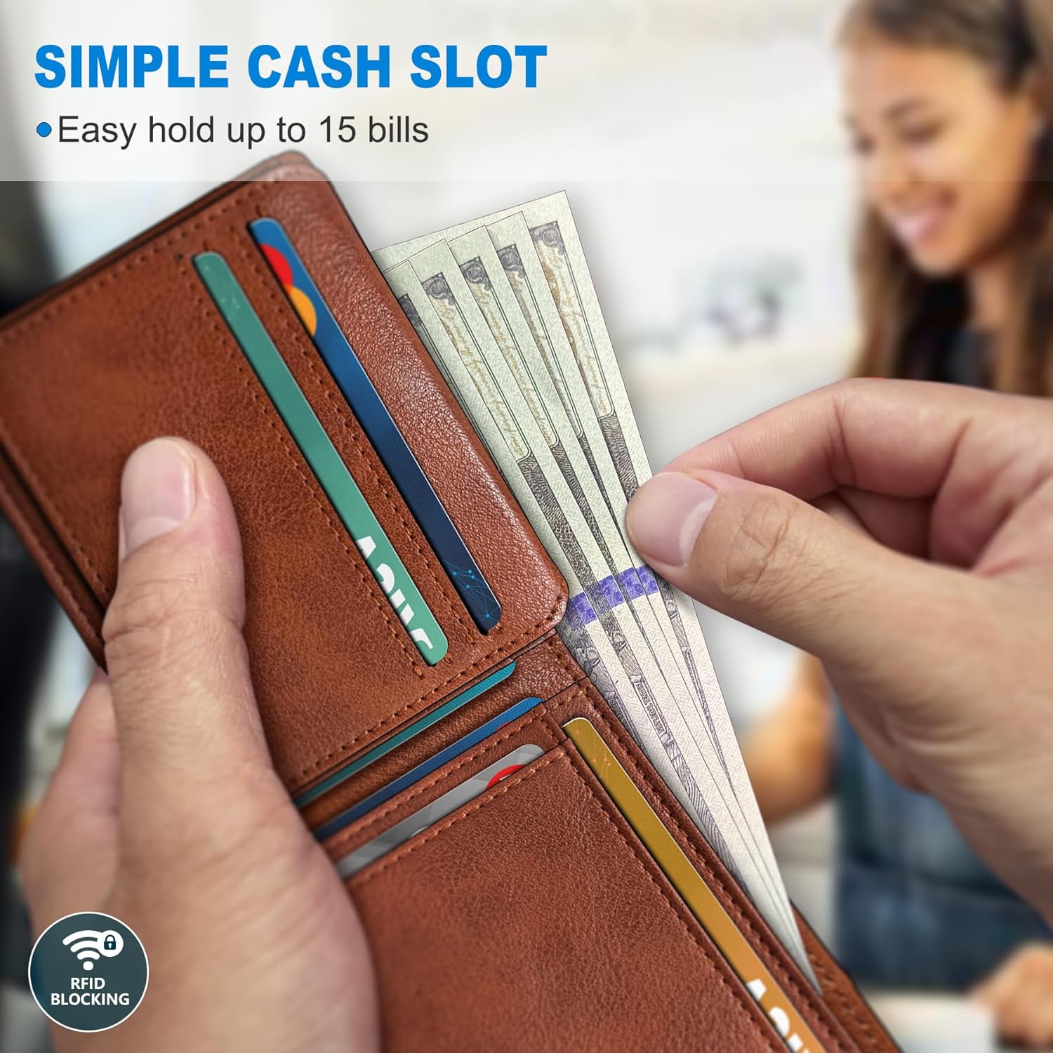 Wallet for Men Wallet with Cash Pocket 2 ID Window 13 Cards,Slim Leather Wallet Front Pocket Card Holder RFID Blocking with Gift Box