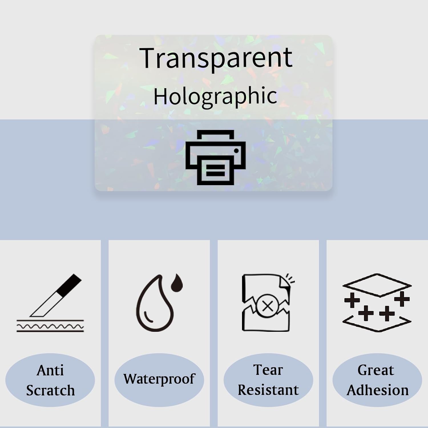 - Holographic Transparent Thermal Stickers: The pattern color of the surface can be changed under the light with the move, which is beautiful and charming! Make your product unique