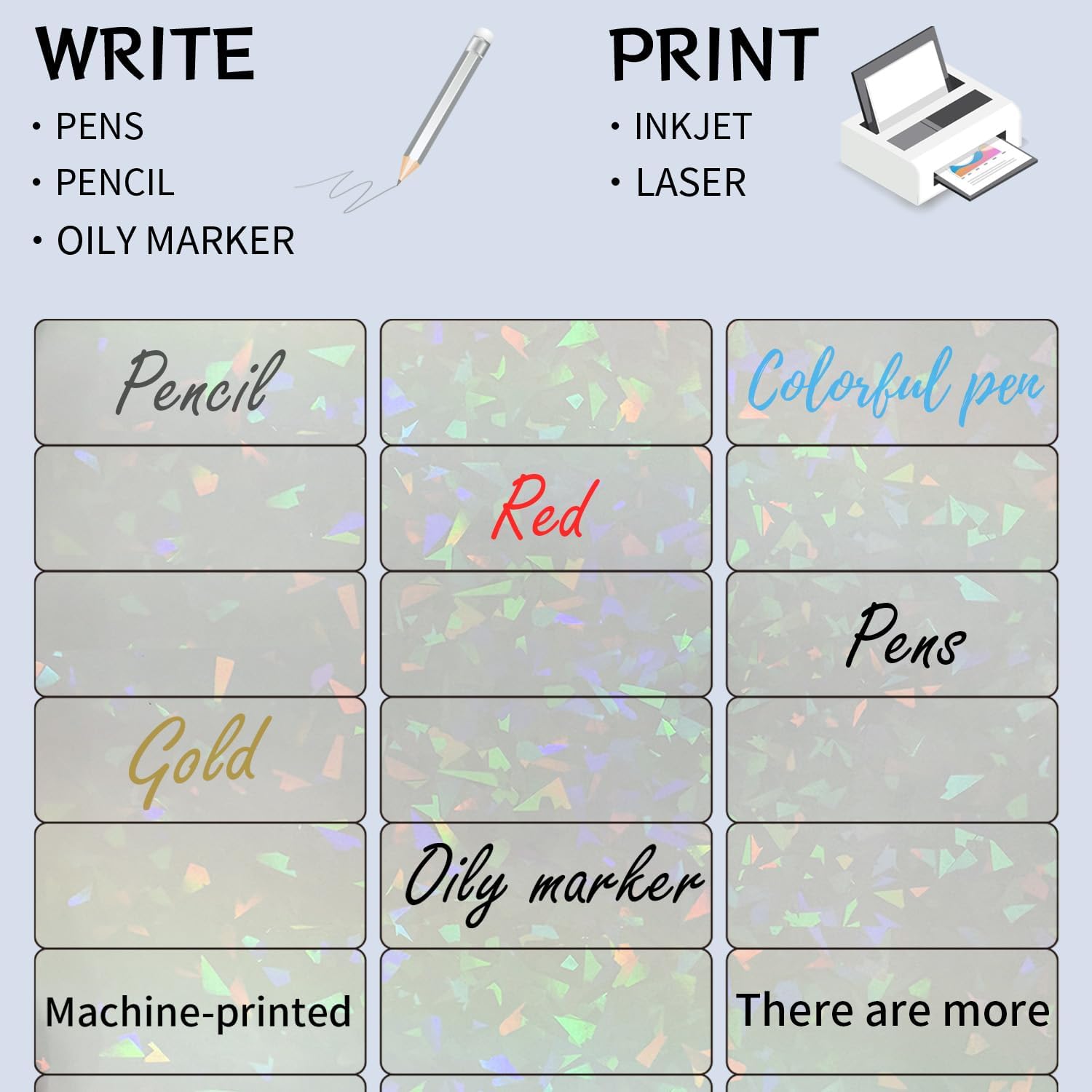 STARLIBOO Transparent Stickers Labels -1" x 2-5/8" Clear Address Labels Mailing Stickers for Laser/Inkjet Printer 8.5"×11"- 200 Labels (Clear Holographic)