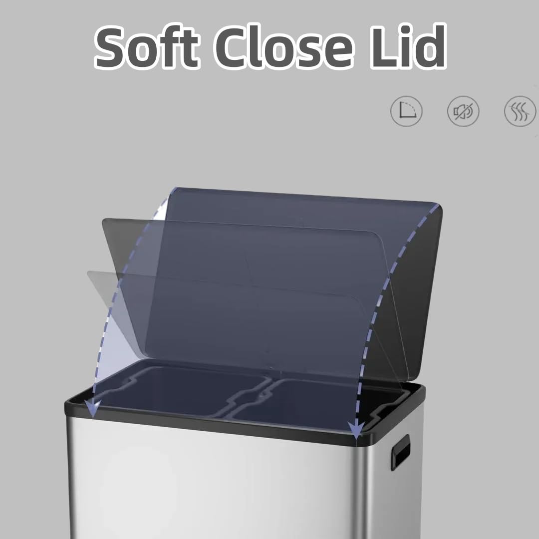 - Soft-Close Lid: The innovative soft-close lid ensures the trash can closes smoothly and silently, eliminating disruptive slamming noises. This promotes a peaceful atmosphere in busy households or shared workspaces and preserves the longevity of the bin.