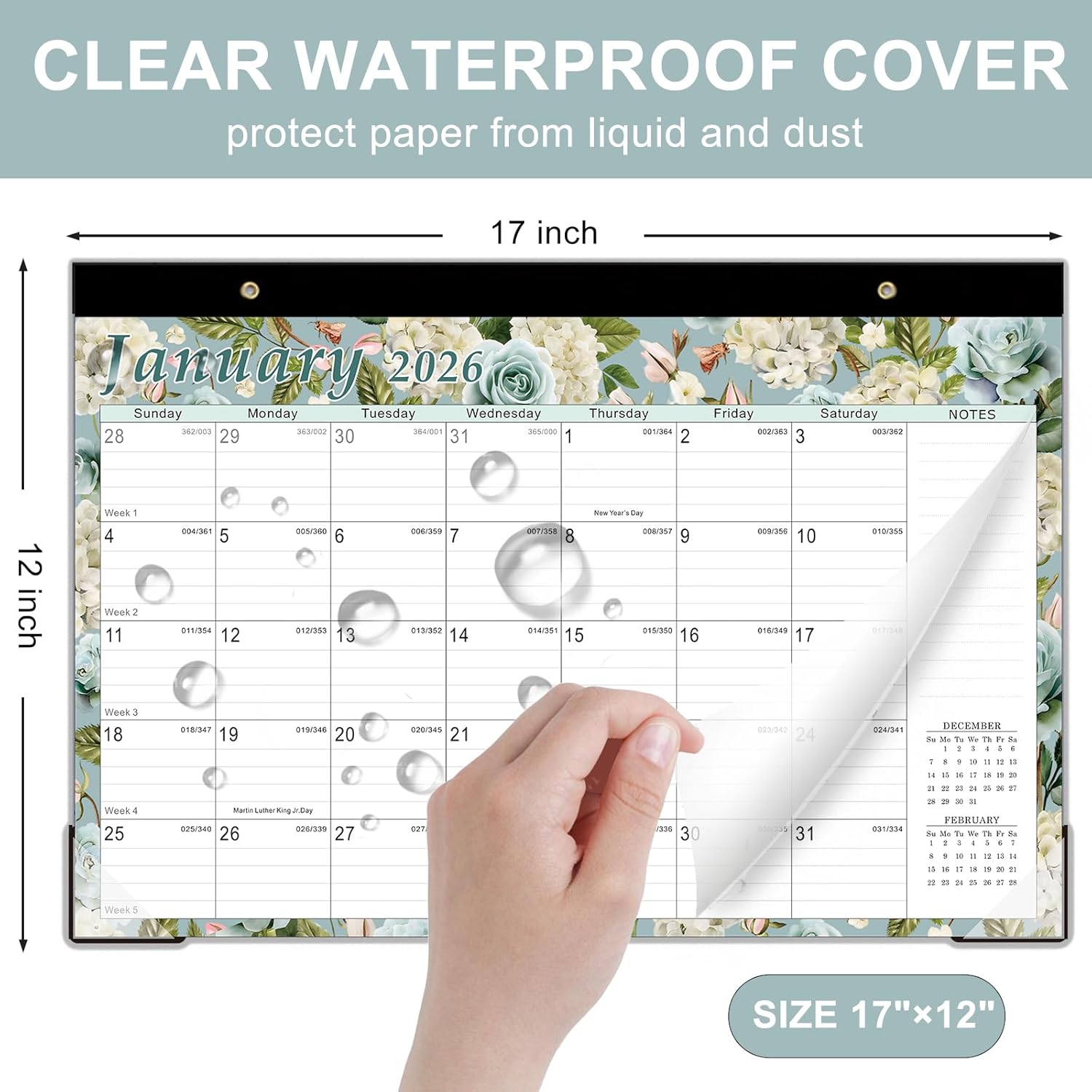 - DESK FORMAT: Standard desk calendar 2026-2027 layout with ample writing space and clear date visibility for easy daily planning and scheduling. 17 X 12 inches. Measures approximately 17 inches wide by 12 inches tall when displayed, perfect for standard desk spaces