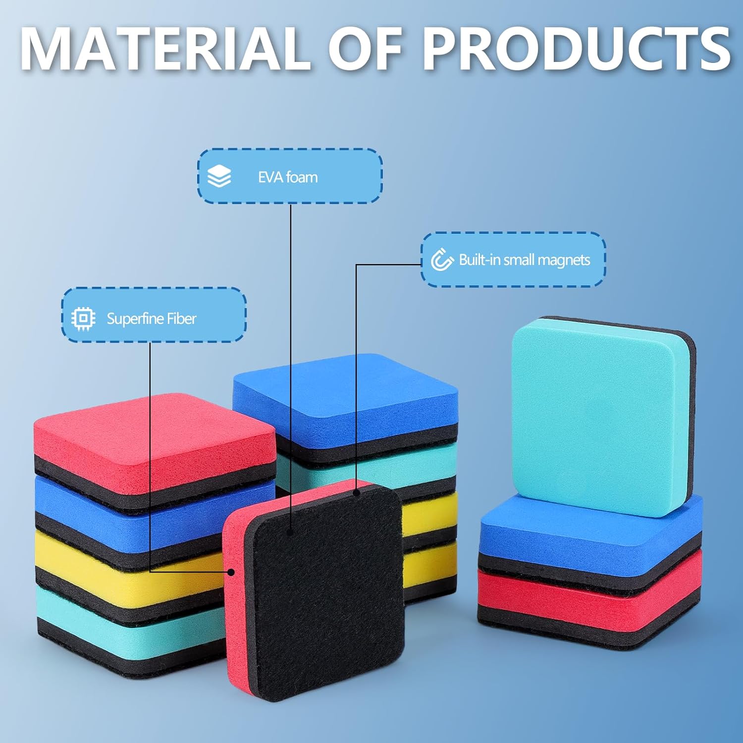 - MATERIAL: Made from premium EVA material with a high-density felt bottom, these dry erase erasers are eco-friendly, non-toxic, odorless, and feature strong adsorbability for reliable use.
